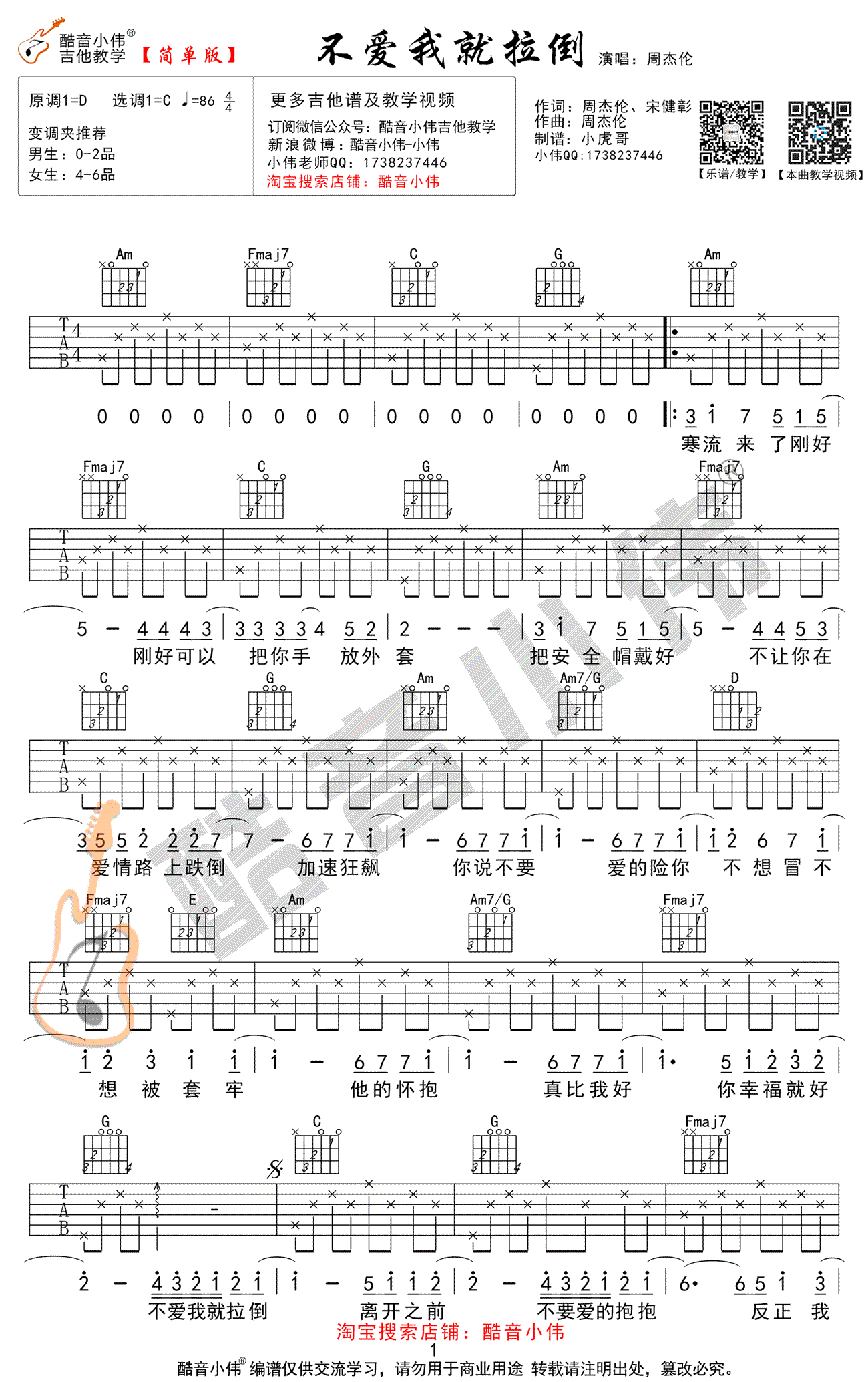 不爱我就拉倒吉他谱 - 周杰伦 - C调吉他弹唱谱