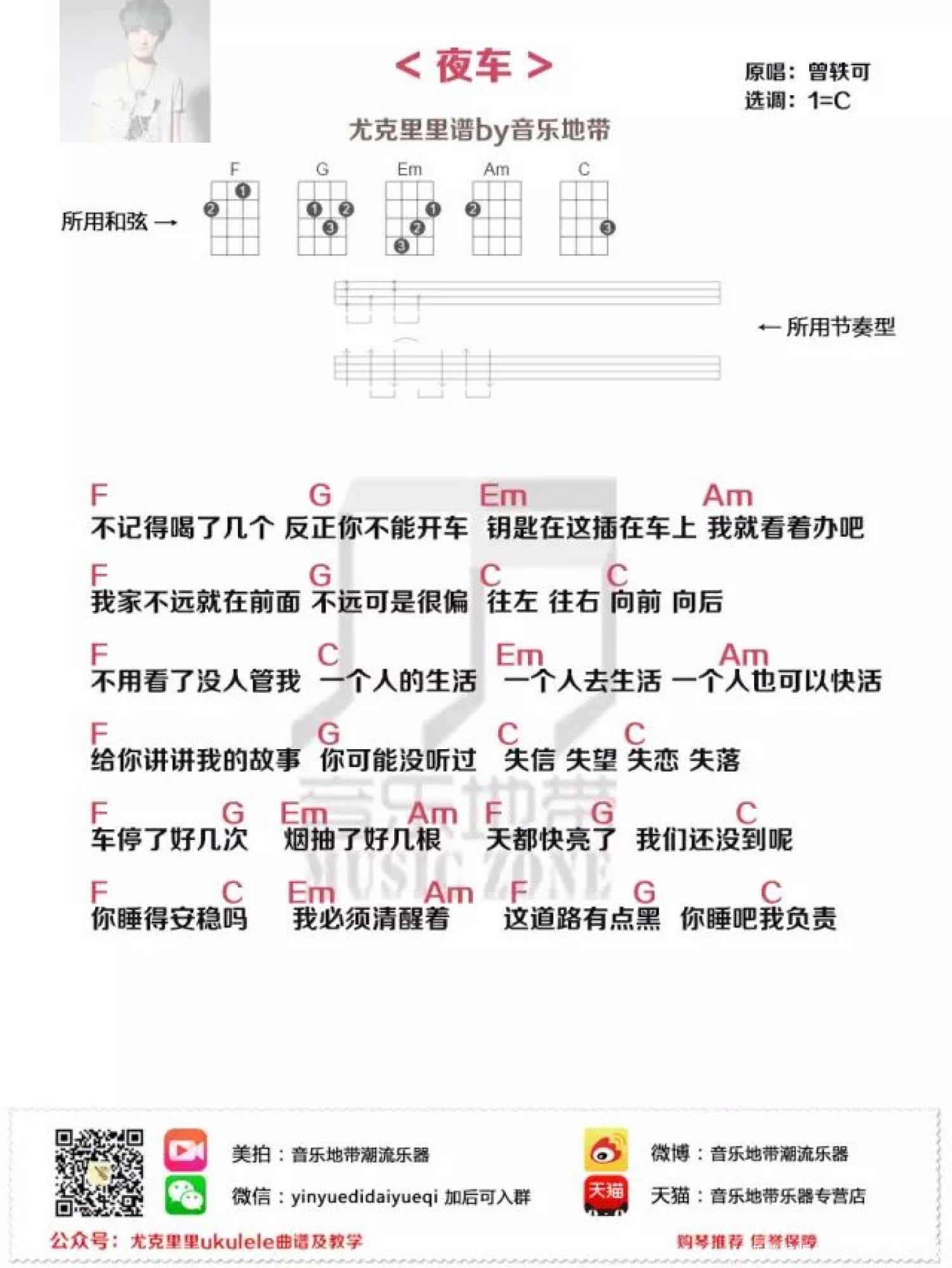 曲谱介绍: 夜车尤克里里曲谱