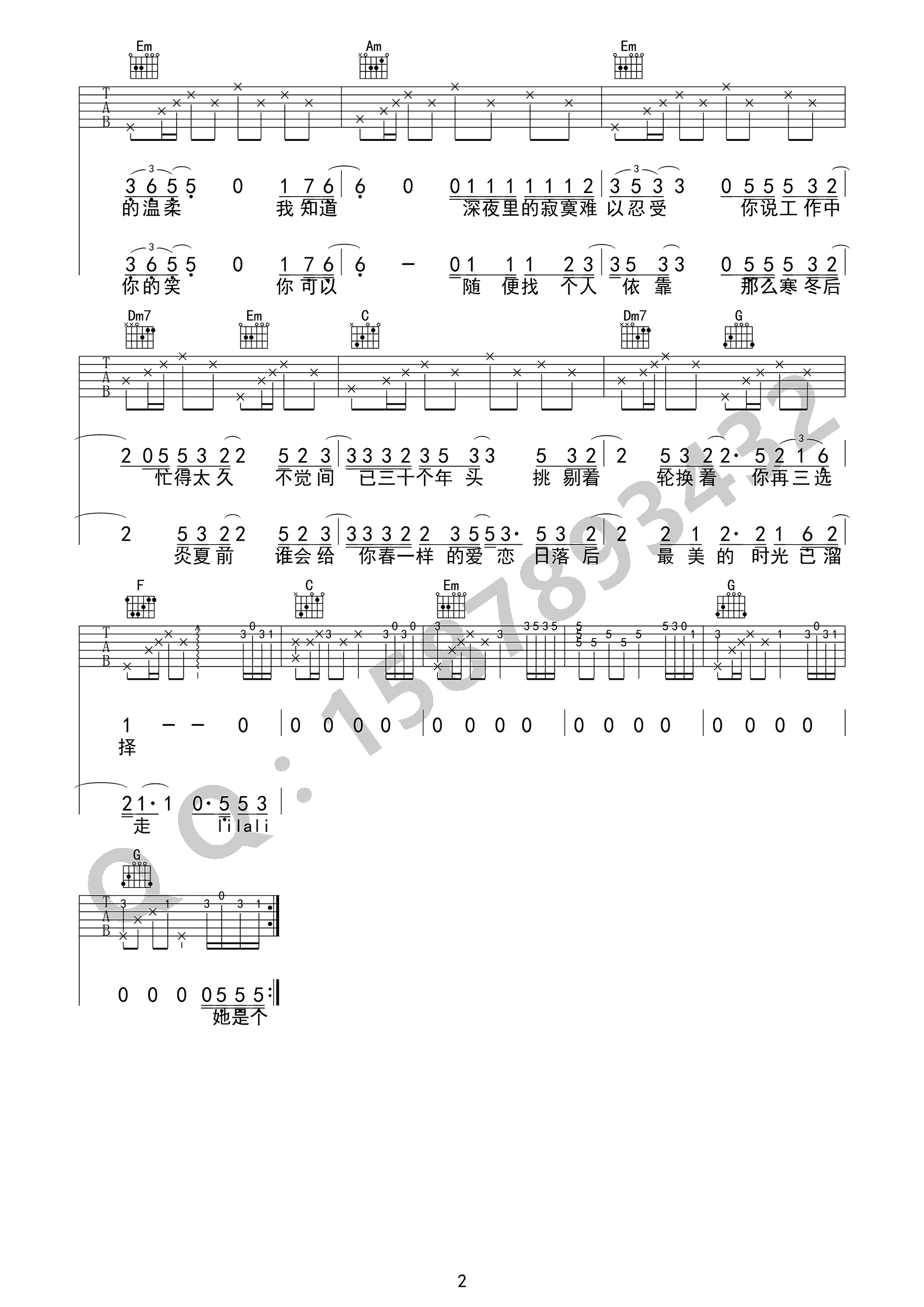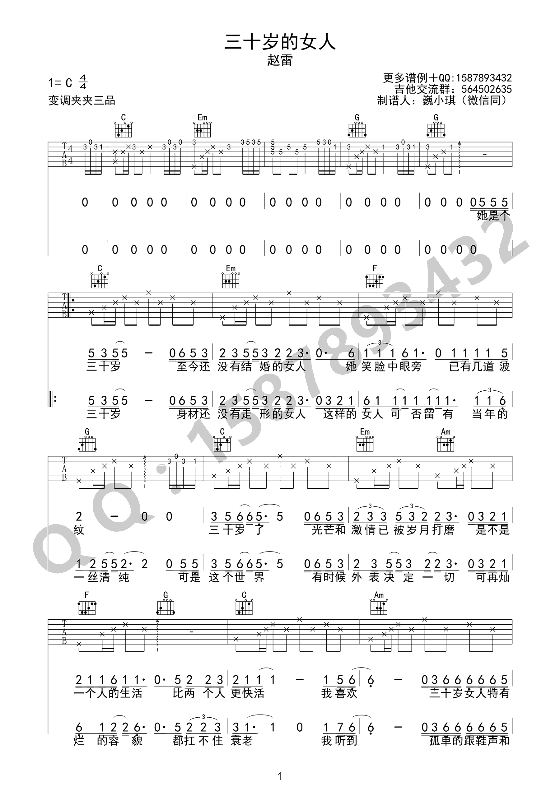 曲谱介绍: 三十岁的女人吉他谱,赵雷词曲创作的一首代表作品,《三十岁的女人》六线谱,高清弹唱图片谱,选用C调指法,变调夹夹3品。感谢巍小琪的制谱分享,琴谱网赵雷吉他谱整理推荐分享。