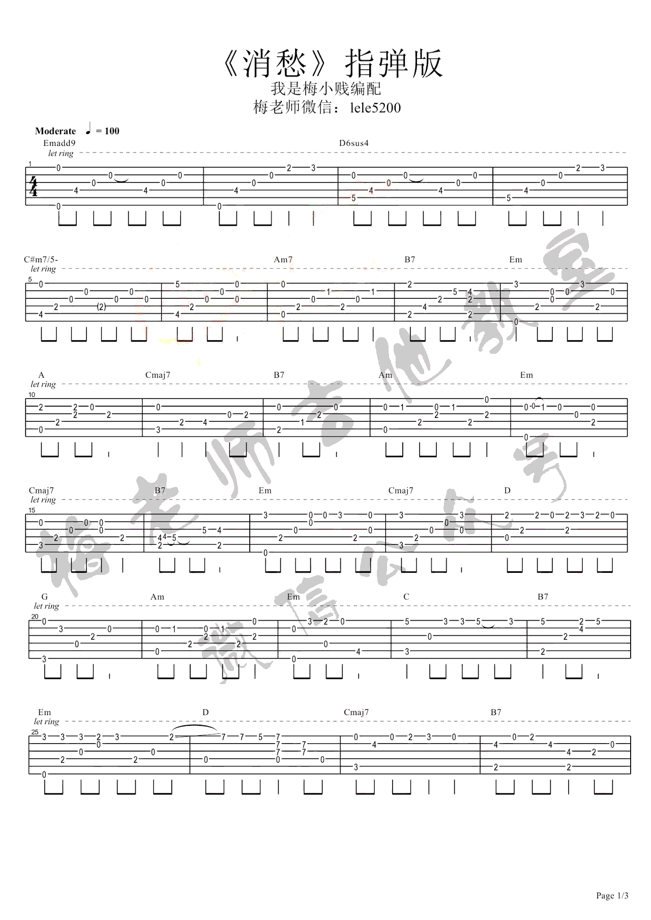曲谱介绍: 消愁吉他谱指弹版,毛不易的演唱的《消愁》指弹谱 ,三张高清图片谱,消愁吉他独奏谱,感谢梅小贱老师的曲谱编配和提供的吉他演奏视频,琴谱网推荐分享。旋律简单平缓,似酒后的微醺低喃,娓娓道来,没有过多情感宣泄,却引起听者的共鸣感动。