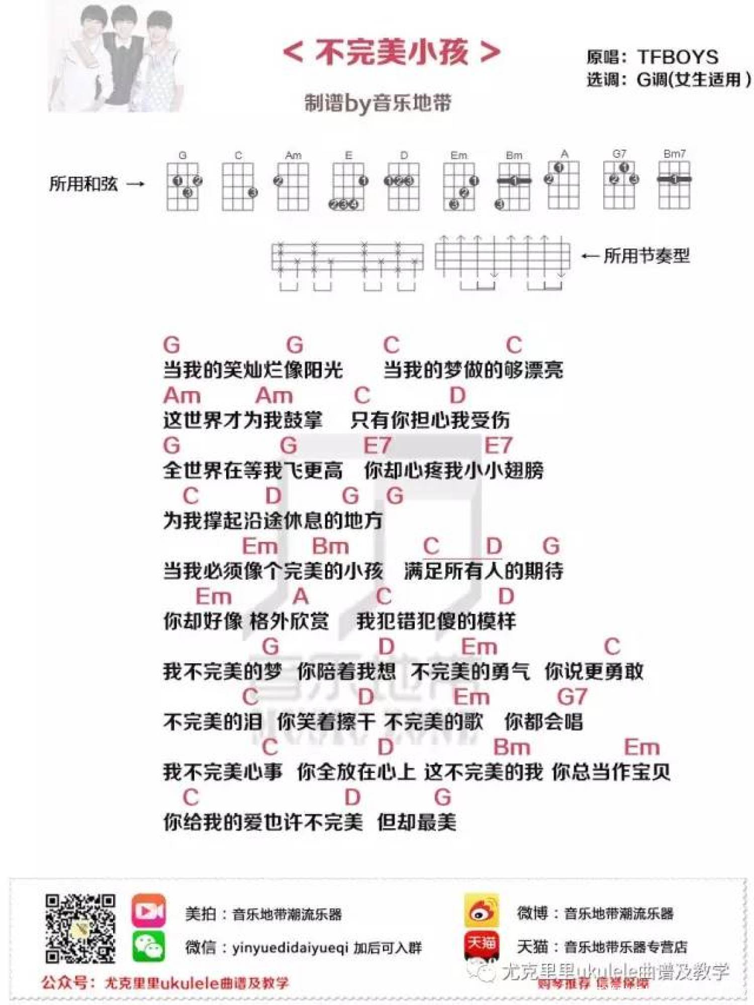当前位置:琴谱网>尤克里里>不完美小孩