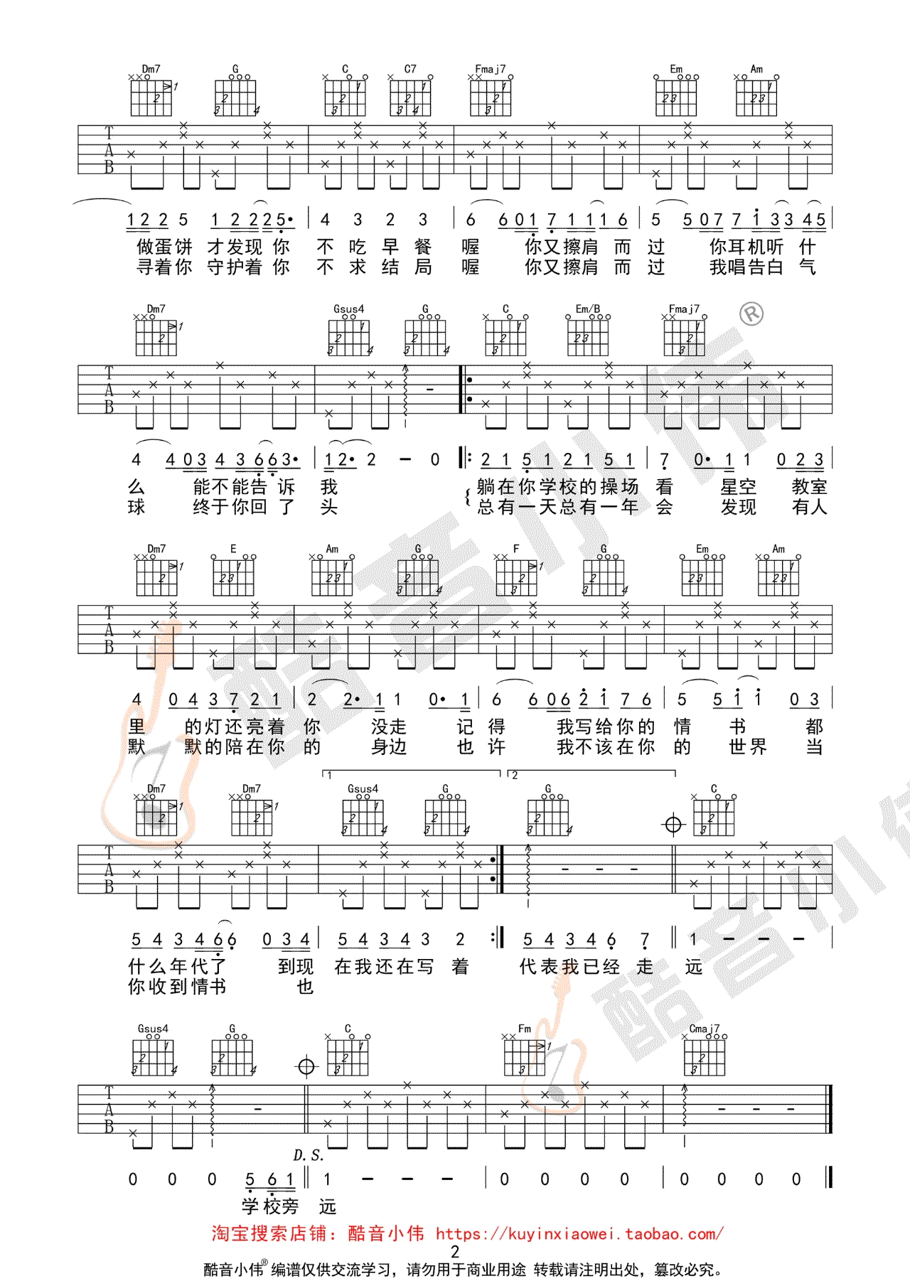 等你下课吉他谱 - 周杰伦 - C调吉他弹唱谱