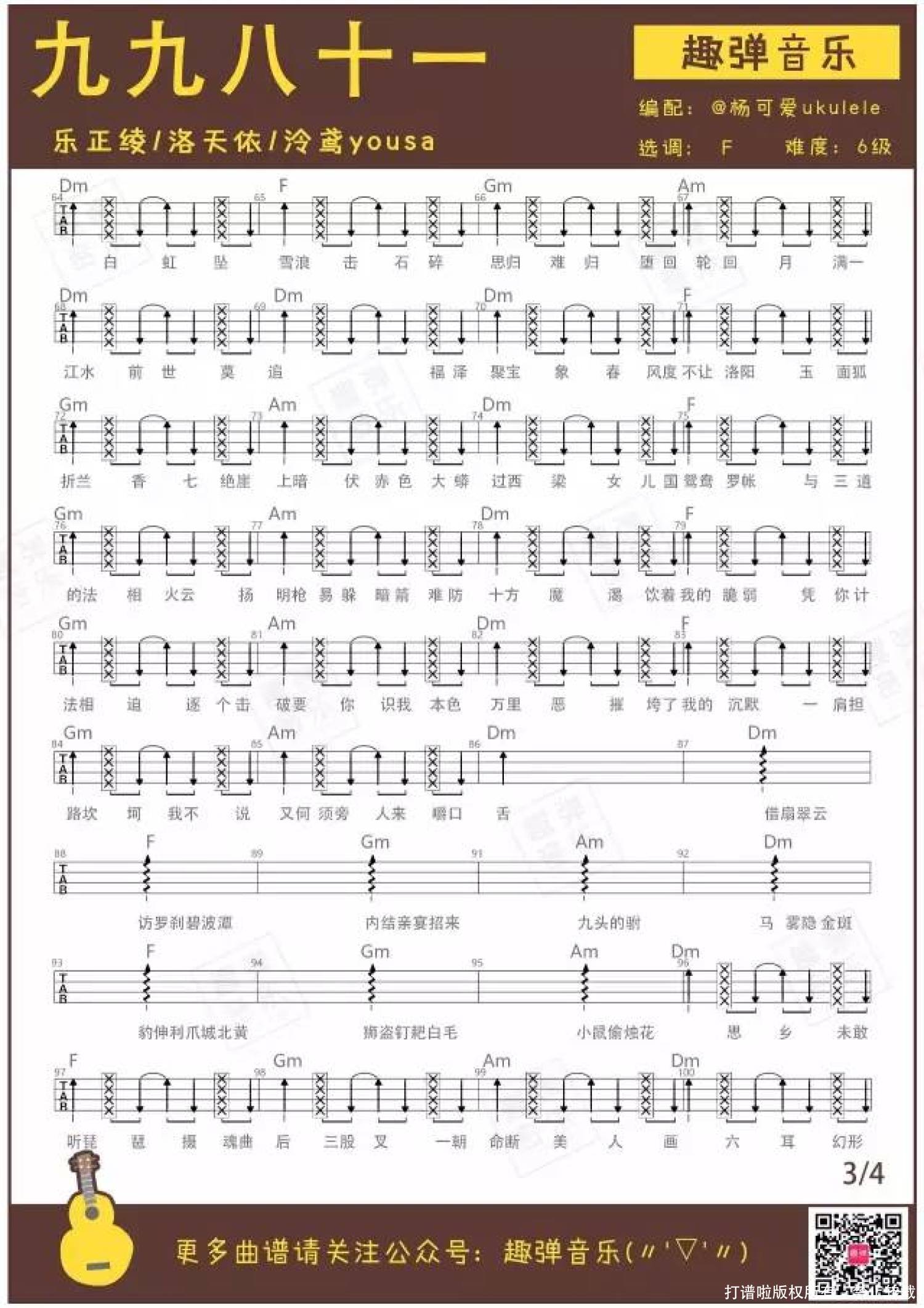 前奏与间奏比较丰富、技巧性较强,涉及较多技巧。