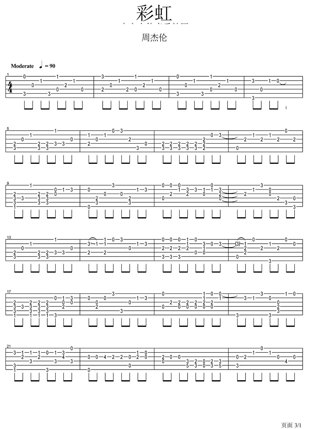 彩虹吉他谱 - 周杰伦 - 吉他独奏谱