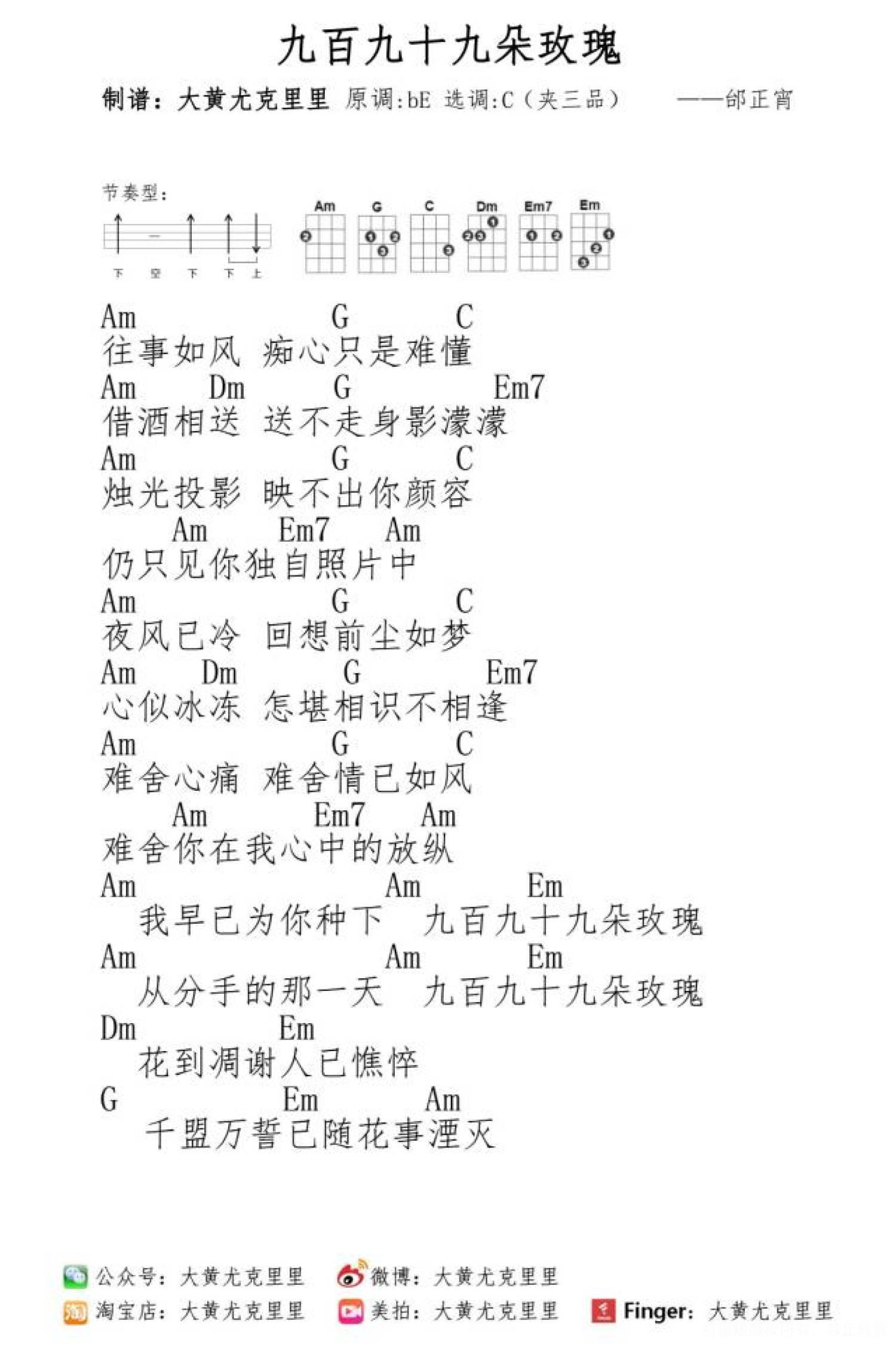 曲谱介绍: 九百九十九朵玫瑰尤克里里谱