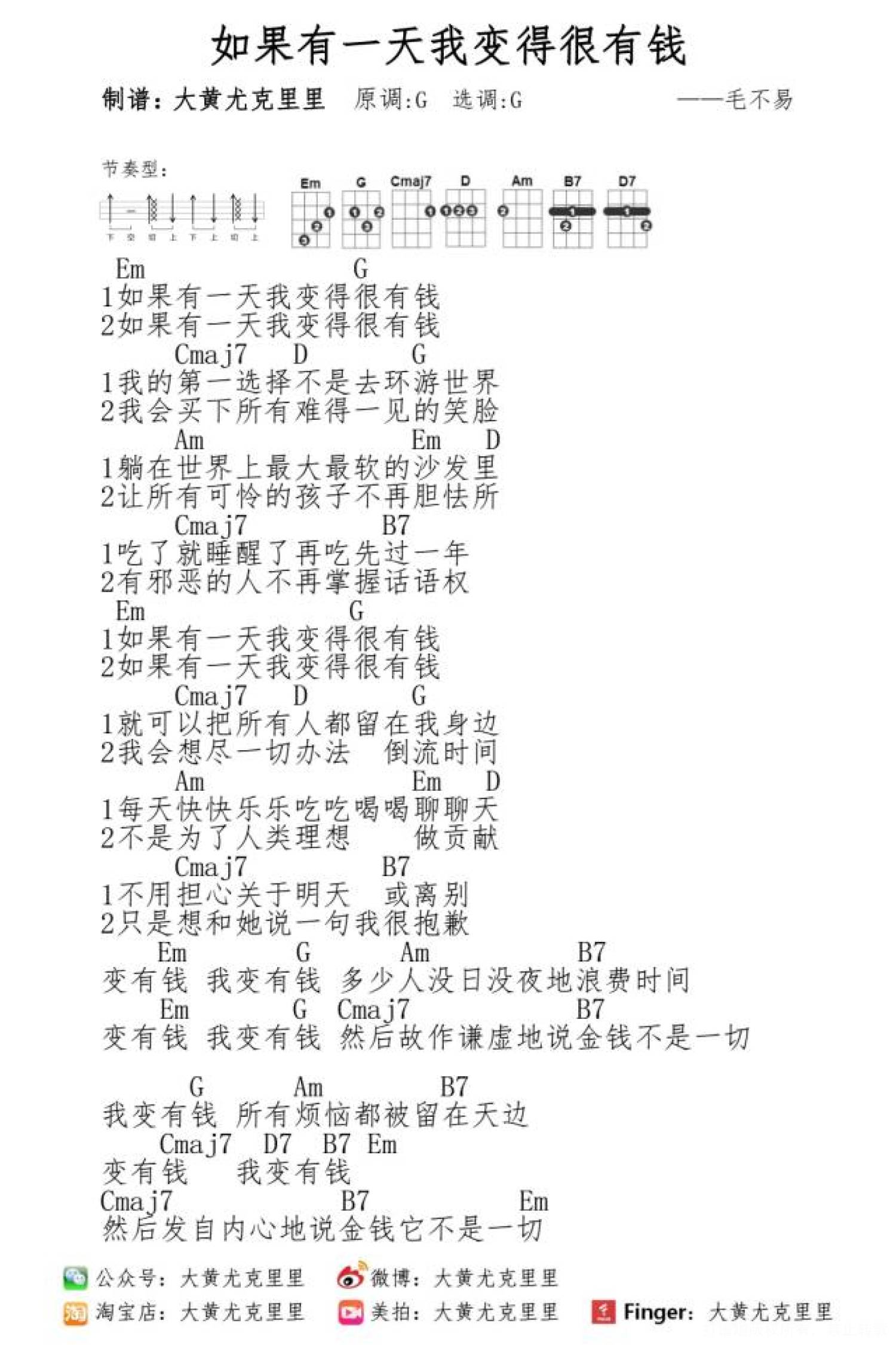 曲谱介绍: 如果有一天我变得很有钱ukulele谱