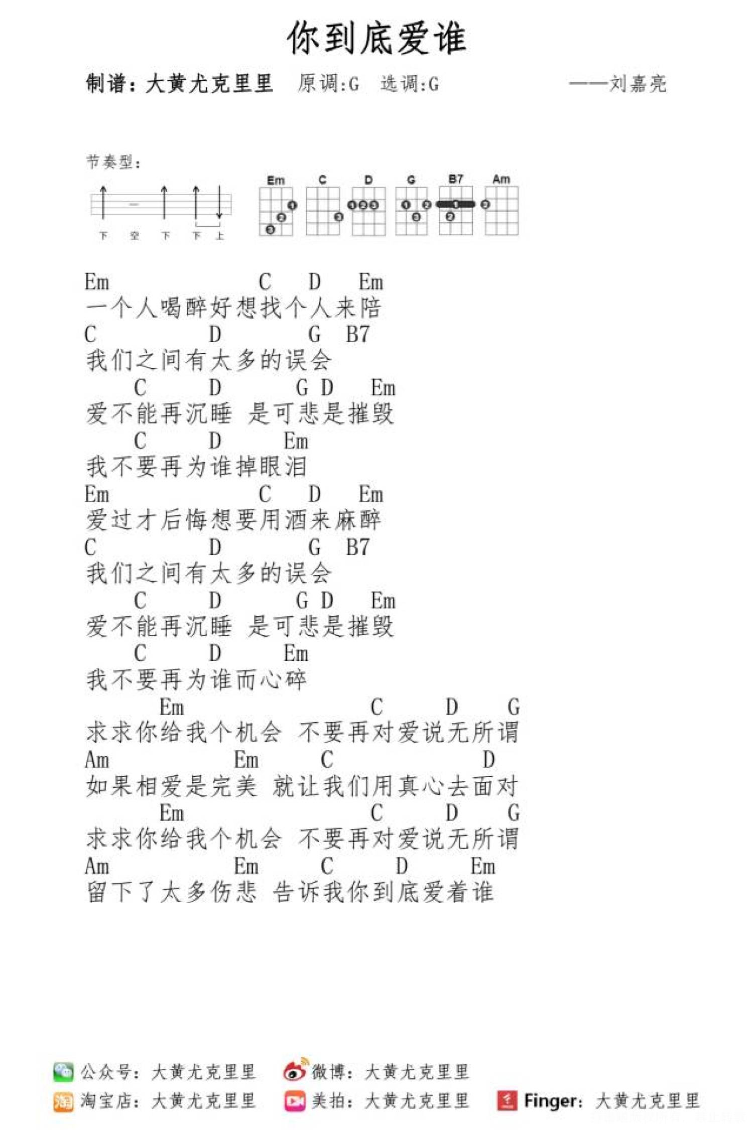 你到底爱谁尤克里里谱