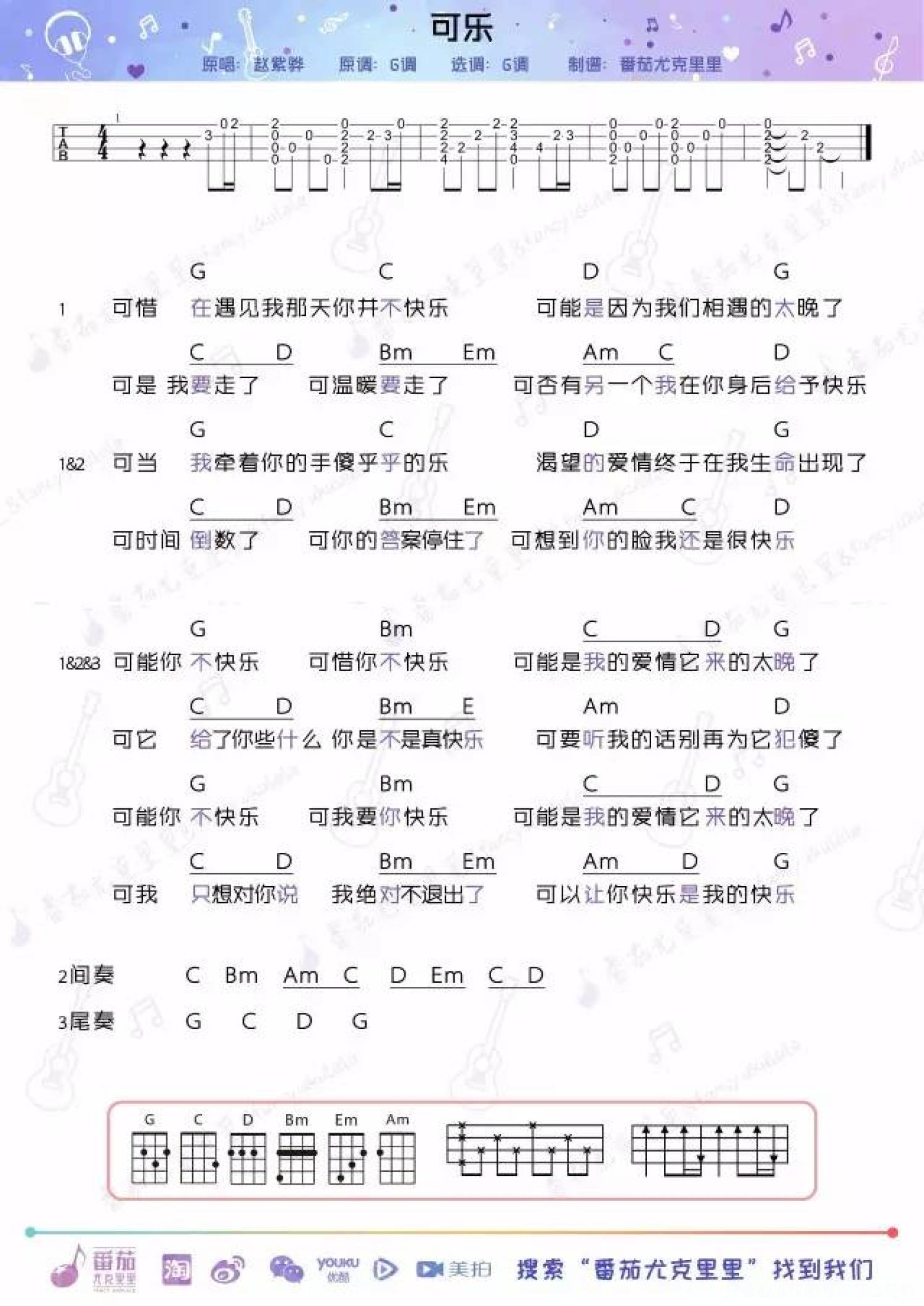 可乐尤克里里谱