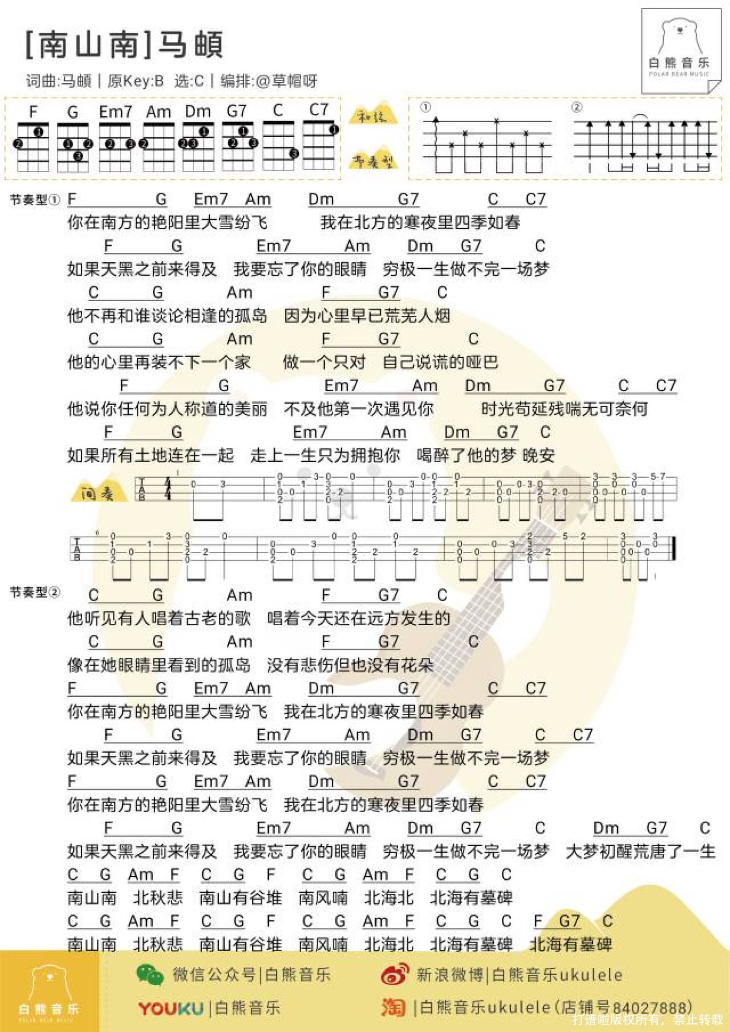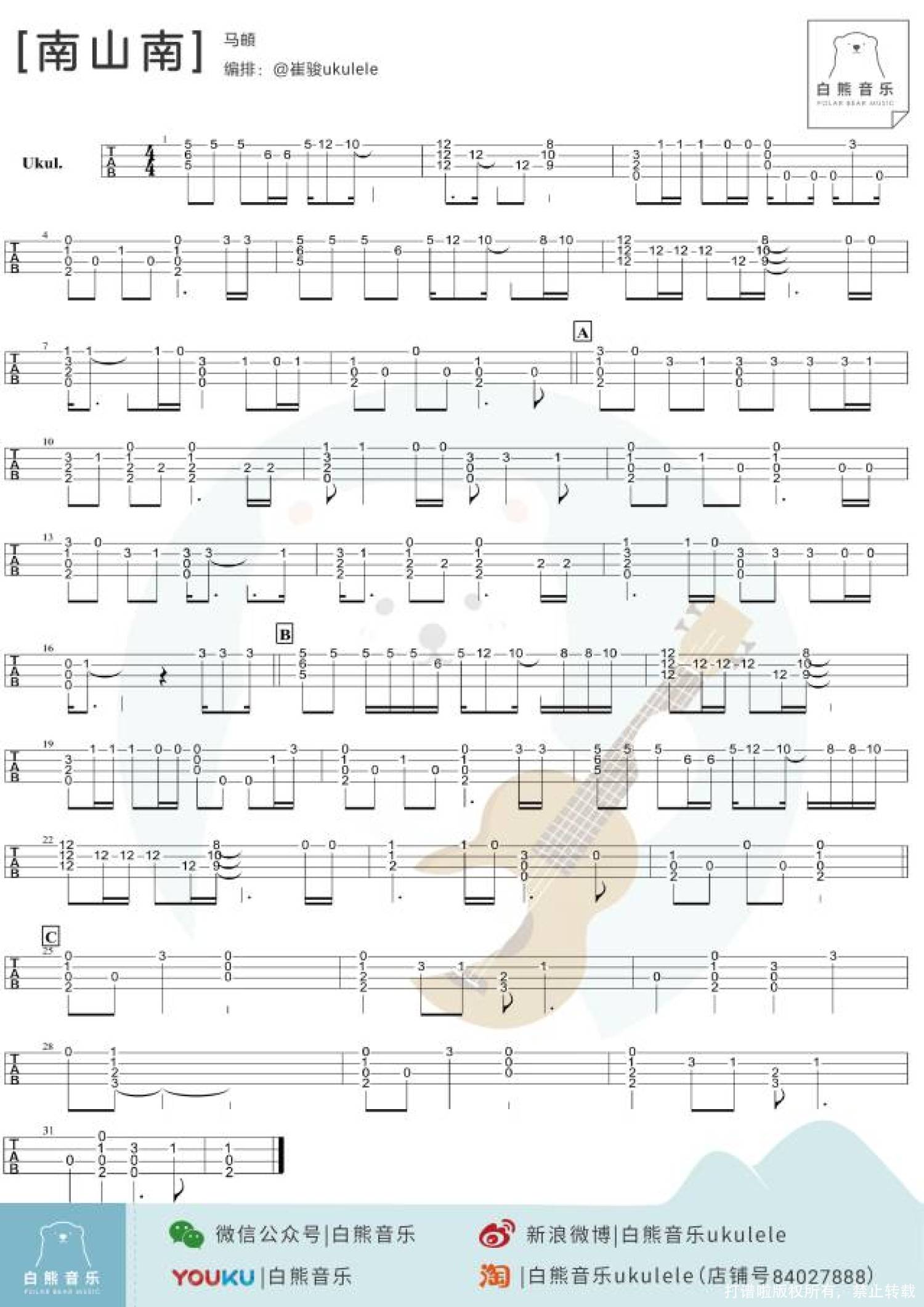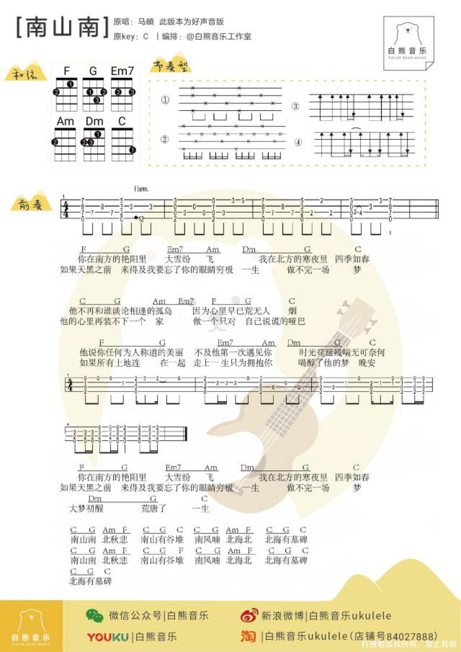 当前位置:琴谱网>尤克里里>南山南