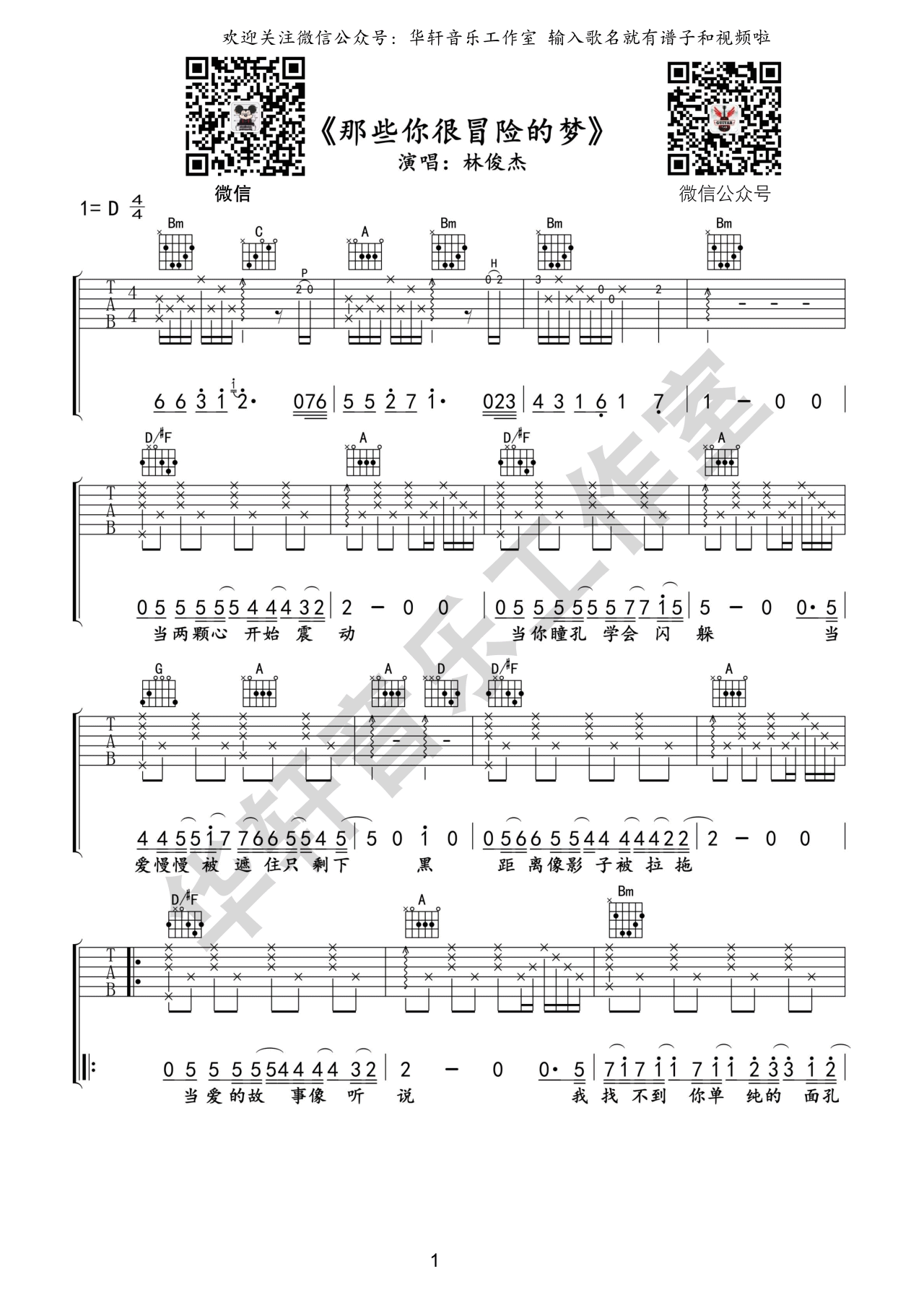 曲谱介绍: 那些你很冒险的梦吉他谱,林俊杰演唱,吉他弹唱六线谱,三张图片谱,歌曲选用D调指法,感谢华轩音乐编配,琴谱网推荐分享。