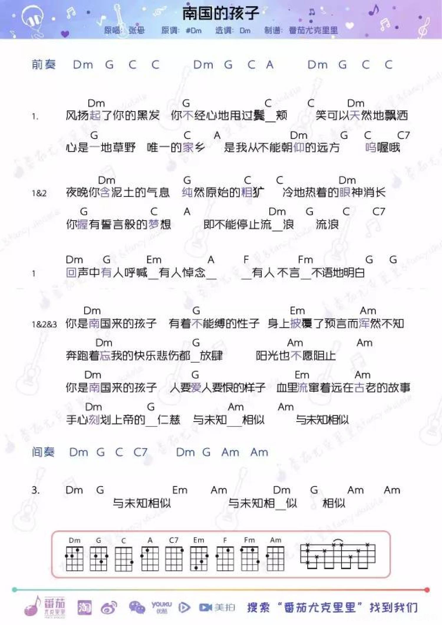 南国的孩子尤克里里谱