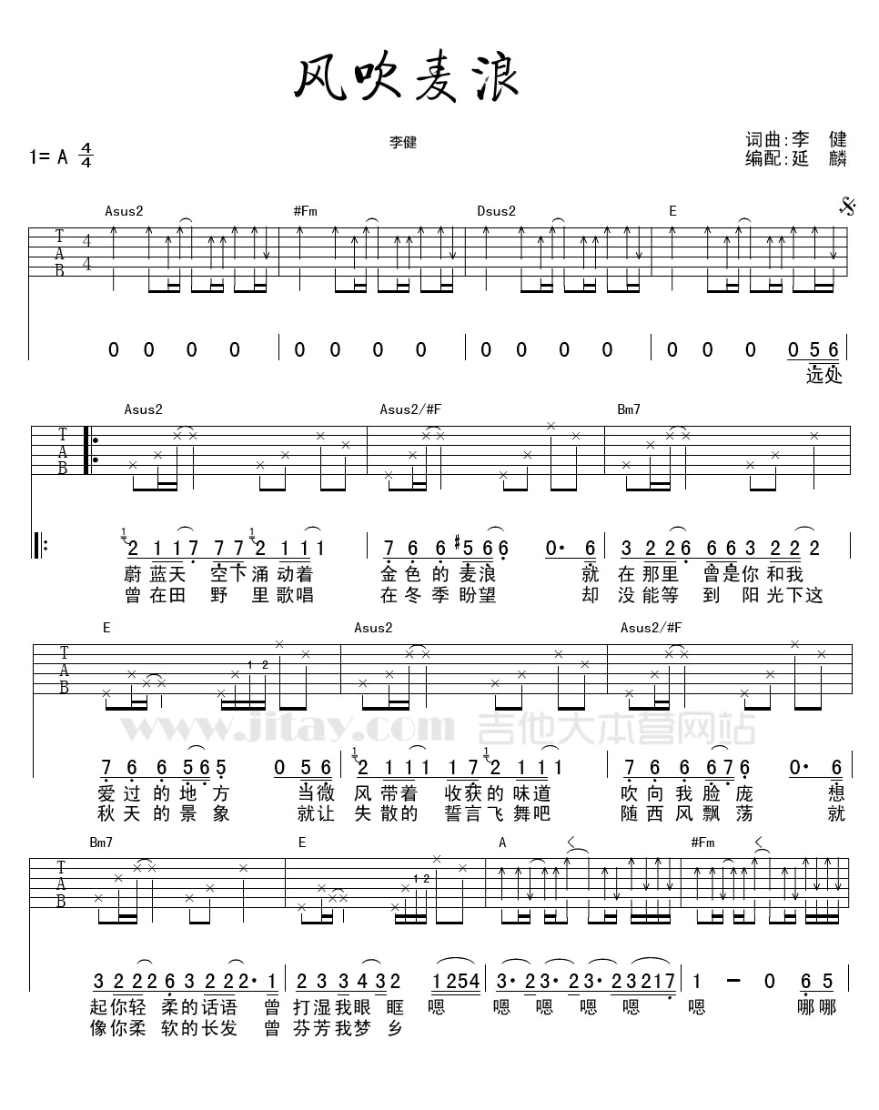 风吹麦浪吉他谱 - 李健 - A调吉他弹唱谱
