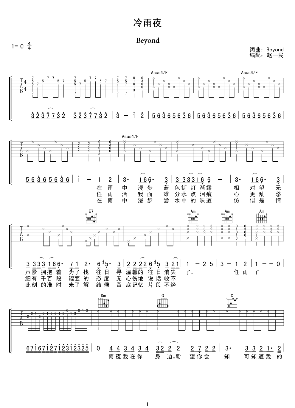 冷雨夜吉他谱 - Beyond - C调吉他弹唱谱