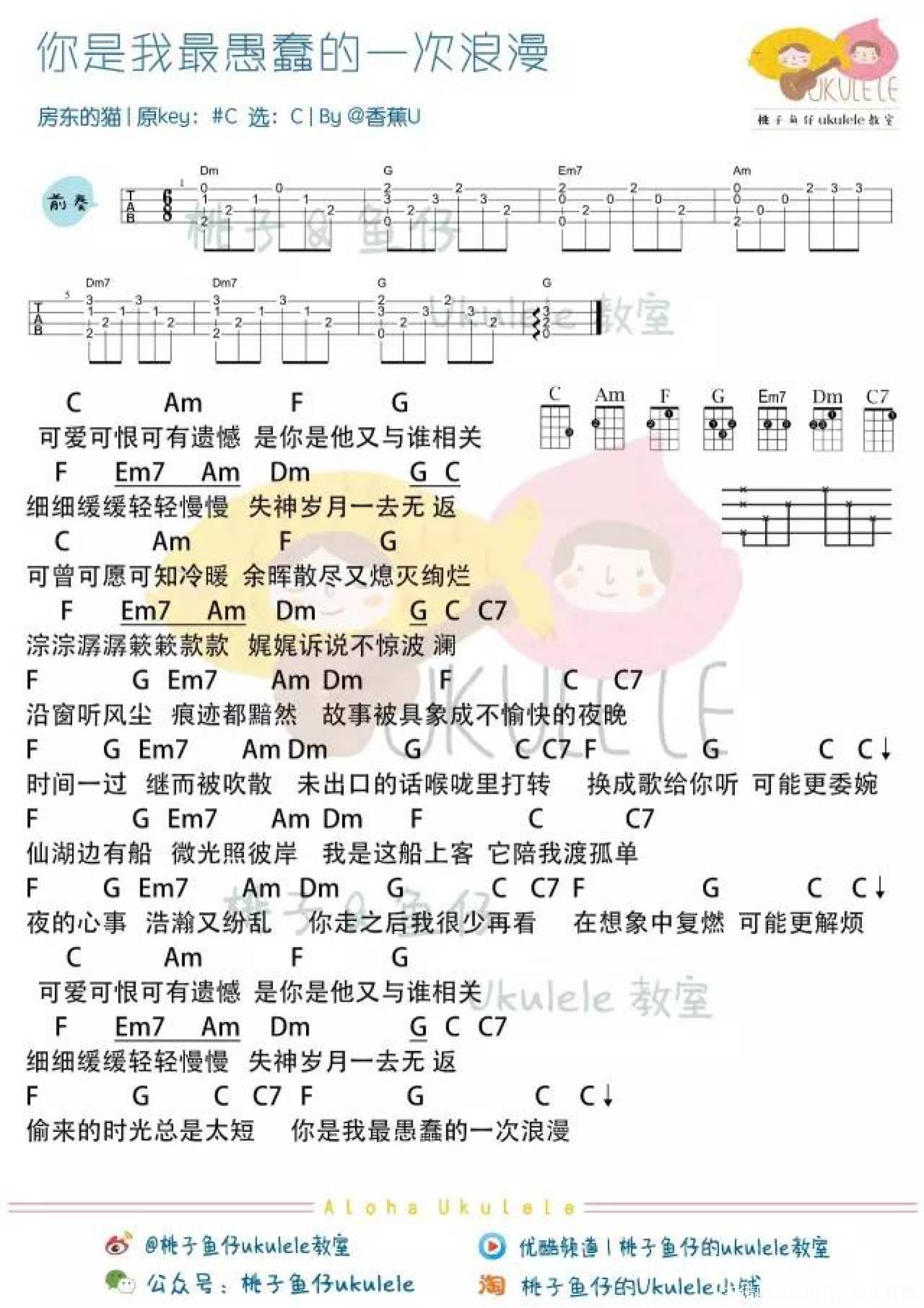 你是我最愚蠢的一次浪漫尤克里里谱