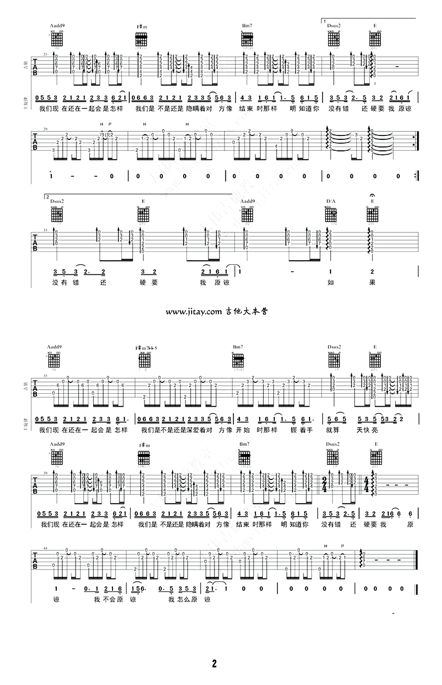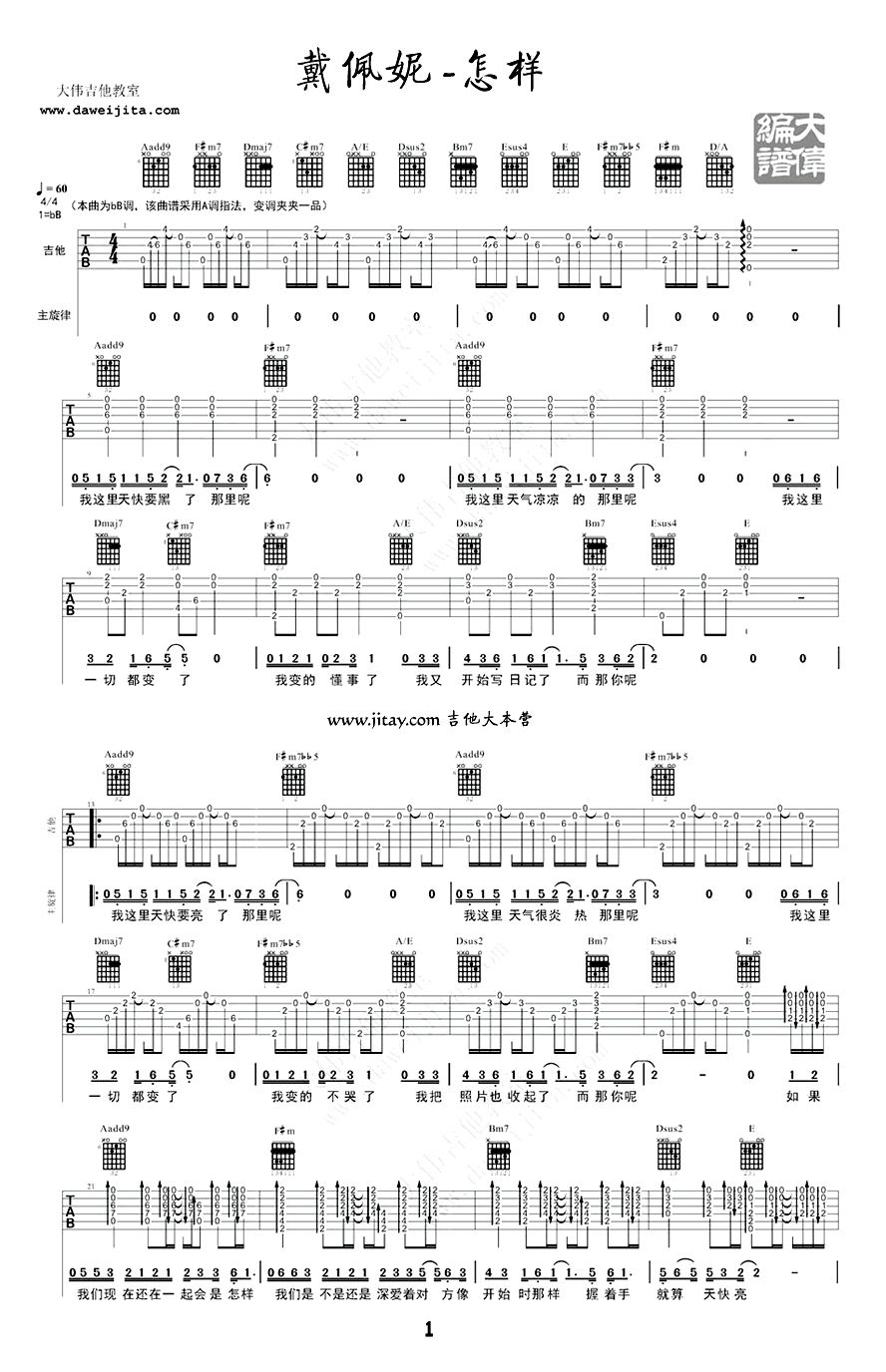 曲谱介绍: 戴佩妮《怎样》吉他谱,本曲谱为bB调,采用A调指法,变调夹夹第一品。怎样六线谱,两张图片谱,大伟吉他编配,琴谱网琴友上传分享。