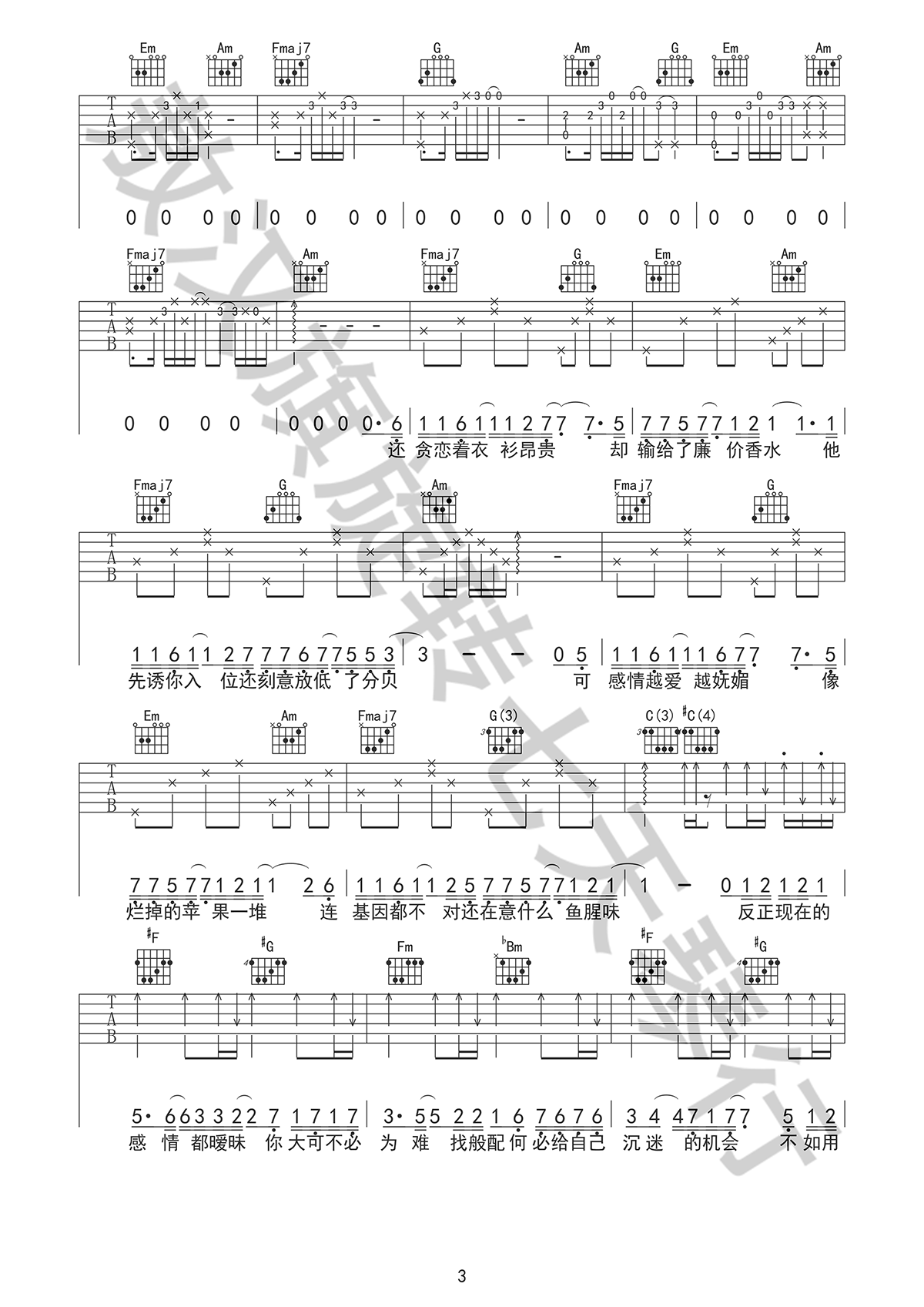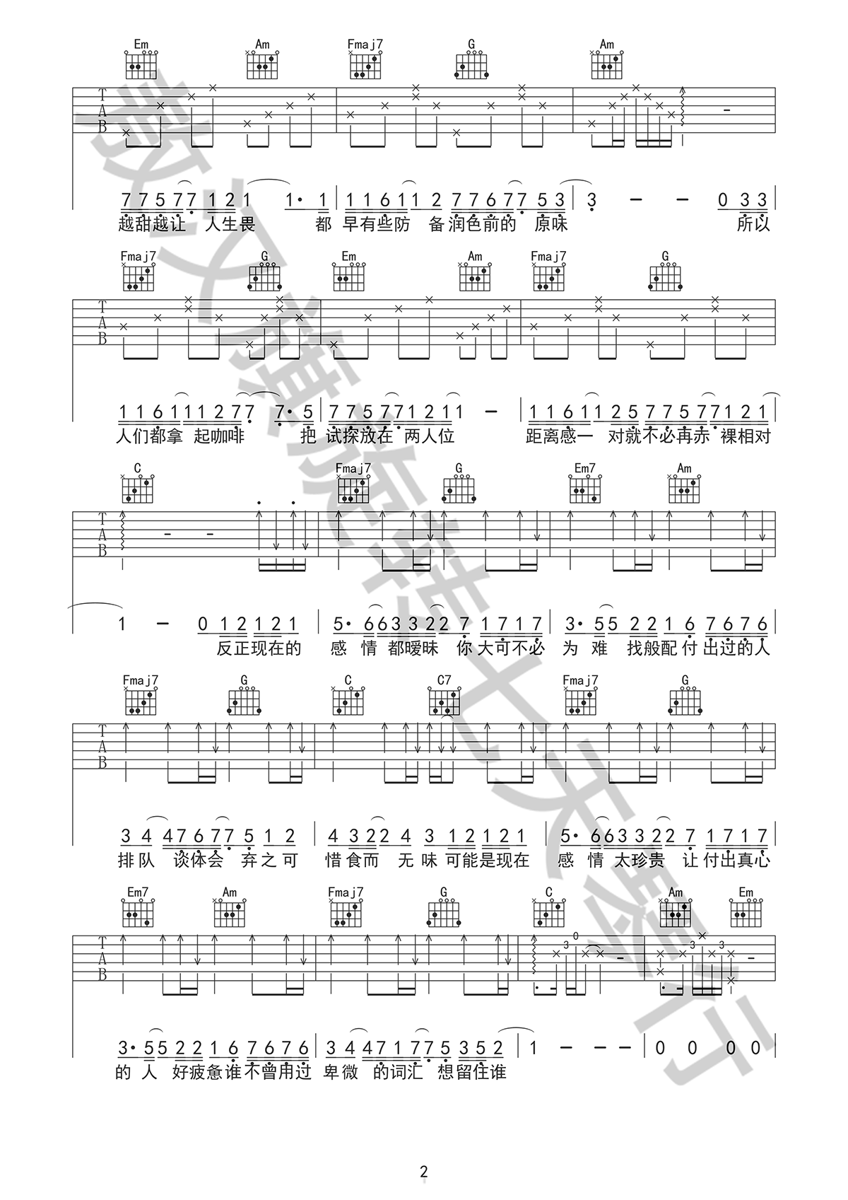 当前位置:琴谱网>吉他弹唱>暧昧