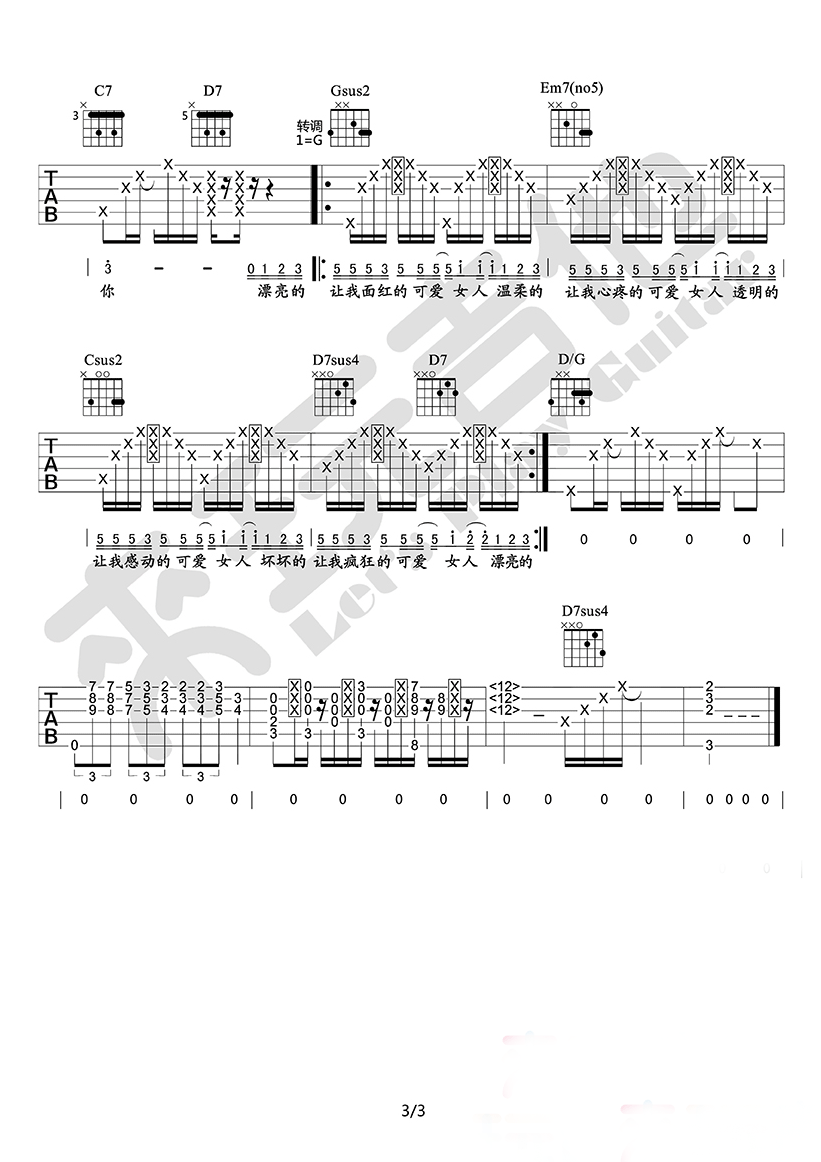 当前位置:琴谱网>吉他弹唱>可爱女人