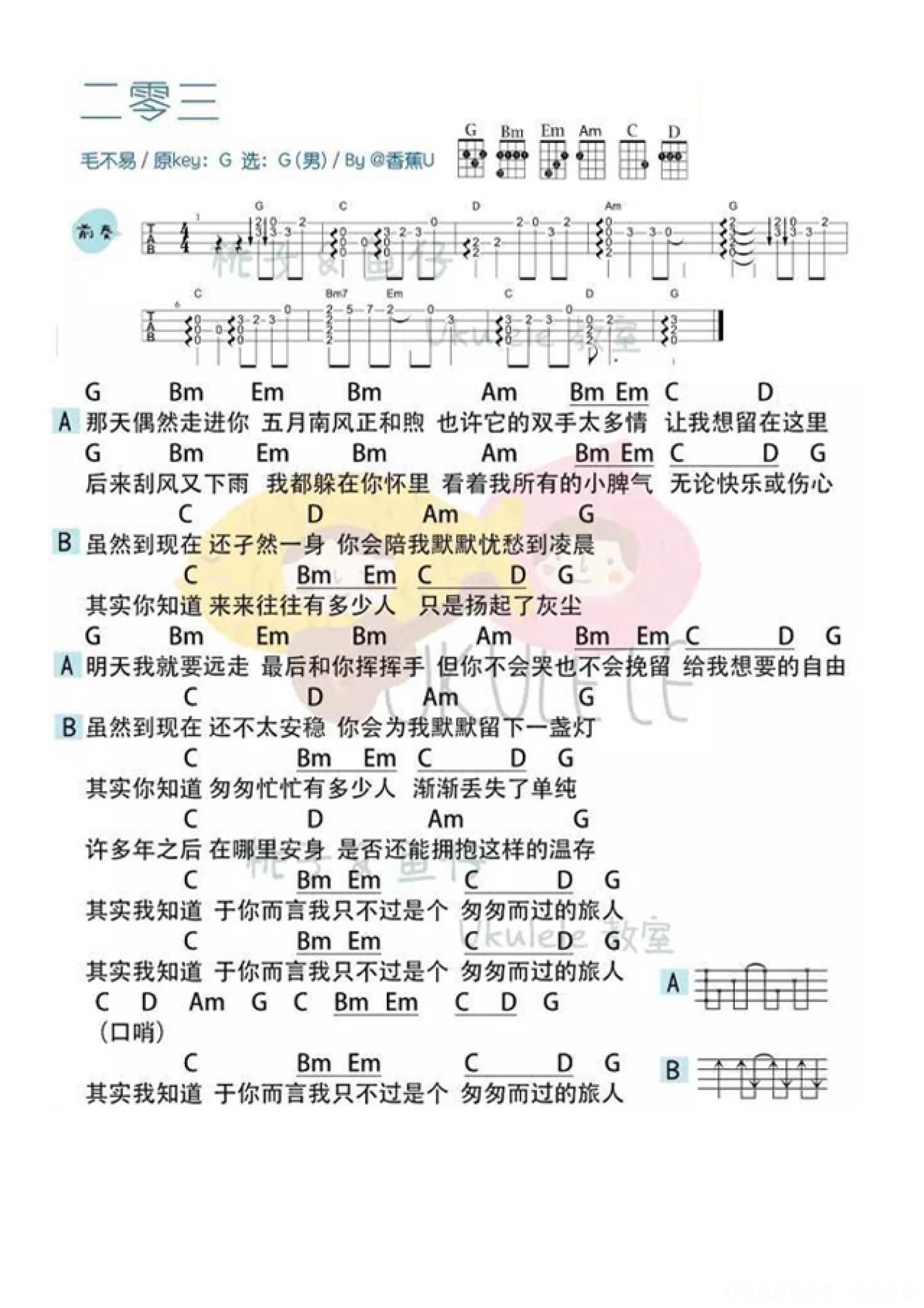 二零三尤克里里谱
