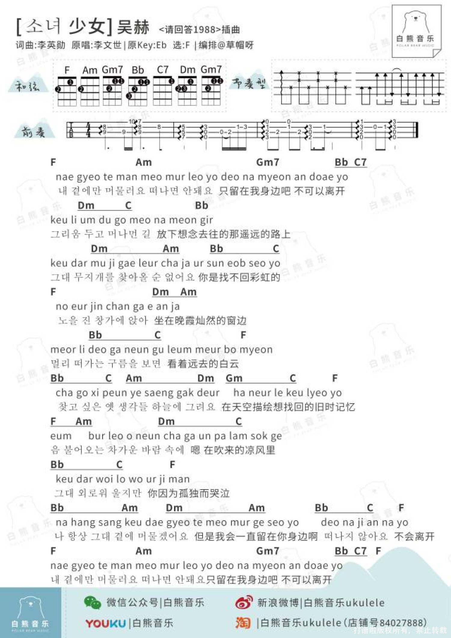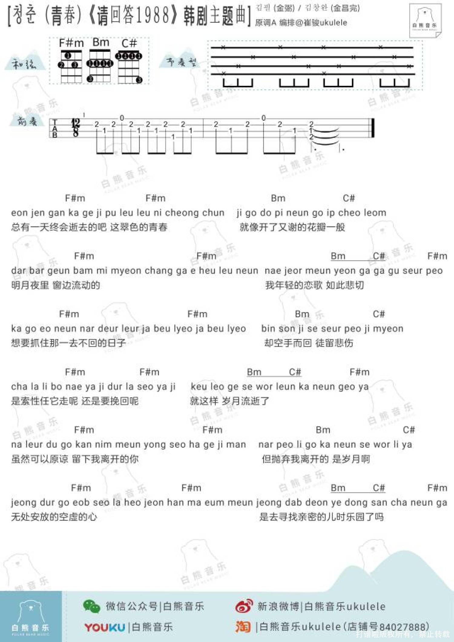 之前就分享过剧中的两首歌曲的弹唱谱,今天特地新增了一些你们想听的歌曲哦[少女]、「青春」,还有「惠化洞」 的指弹谱~~