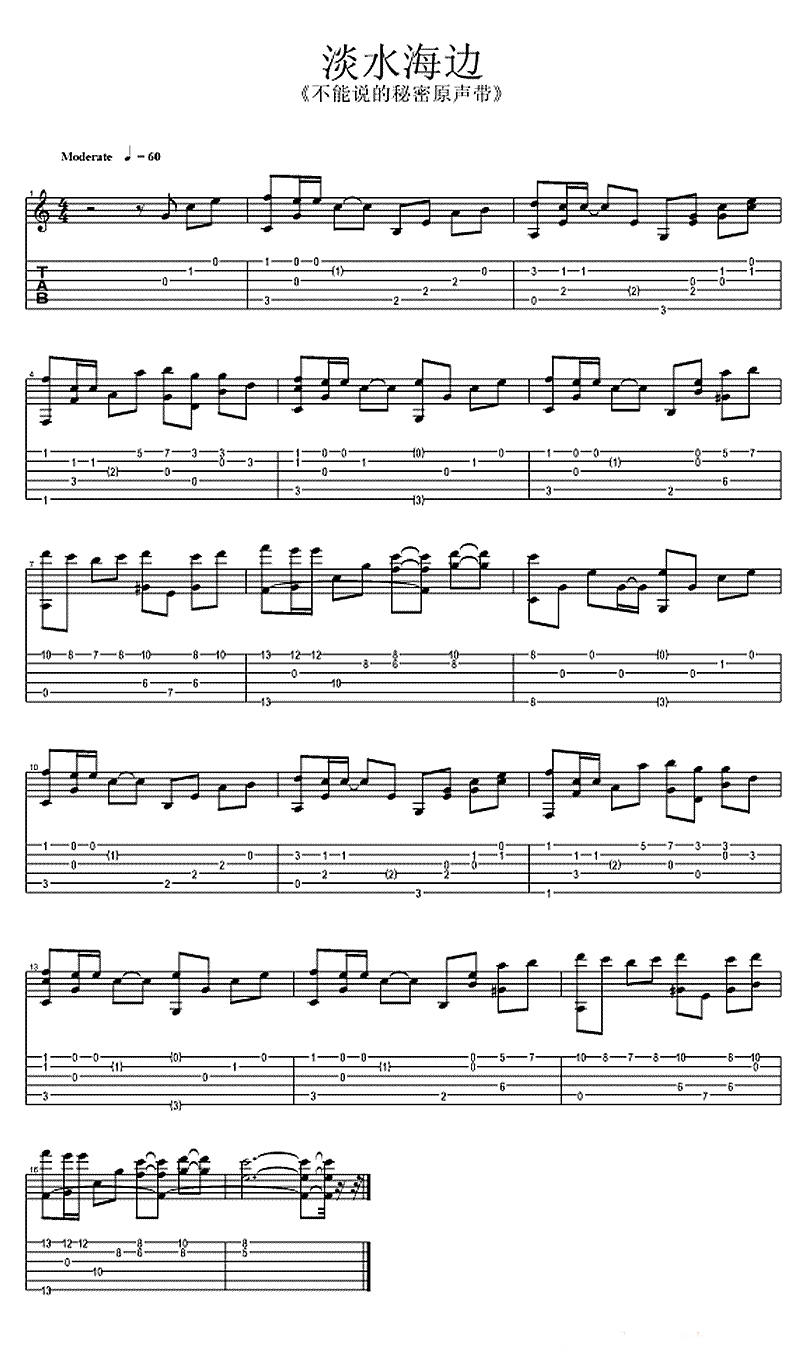 曲谱介绍: 淡水海边吉他谱,电影《不能说的秘密》插曲,淡水海边指弹独奏谱,C调高清图片谱,一曲纯美的音乐,钢琴版清脆动听,相信吉他版也有给你带来另一种感动,感谢弦心距的提供和分享,琴谱网整理上传。周杰伦创作曲《淡水海边》。当年一部《不能说的秘密》成为多少人心中的青春记忆,
