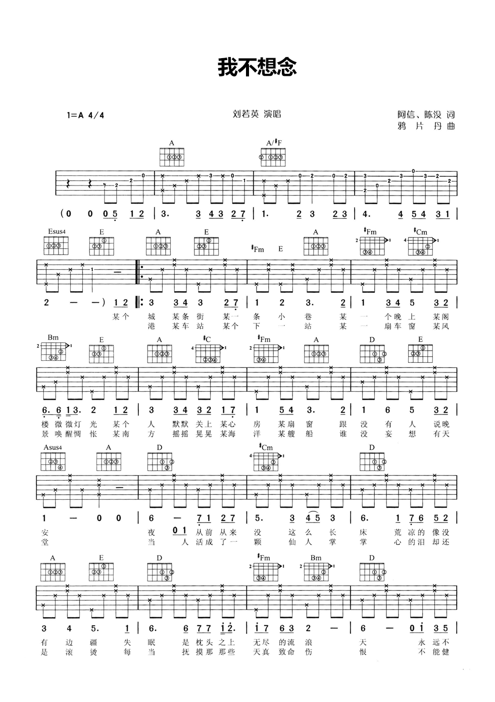 我不想念吉他谱 - 刘若英 - A调吉他弹唱谱