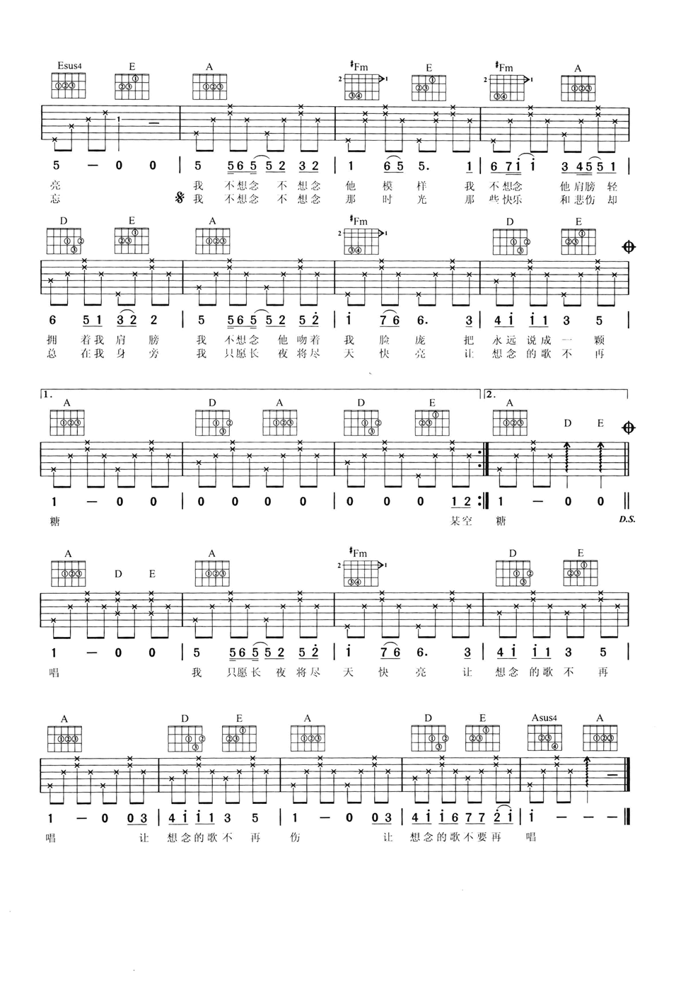 当前位置:琴谱网>吉他弹唱>我不想念