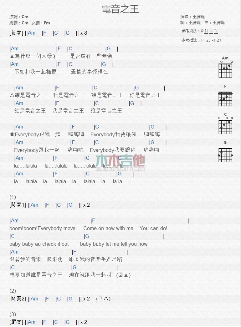 电音之王_吉他谱 - 电音之王 - 吉他弹唱谱