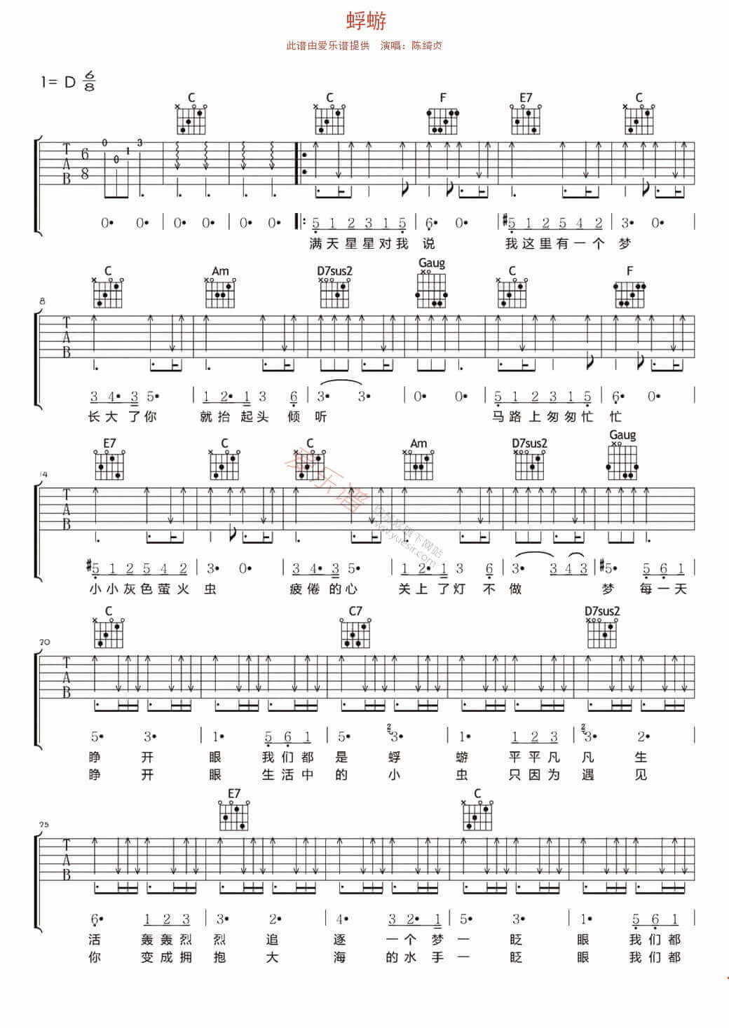 蜉蝣吉他谱 - 陈绮贞 - D调吉他弹唱谱