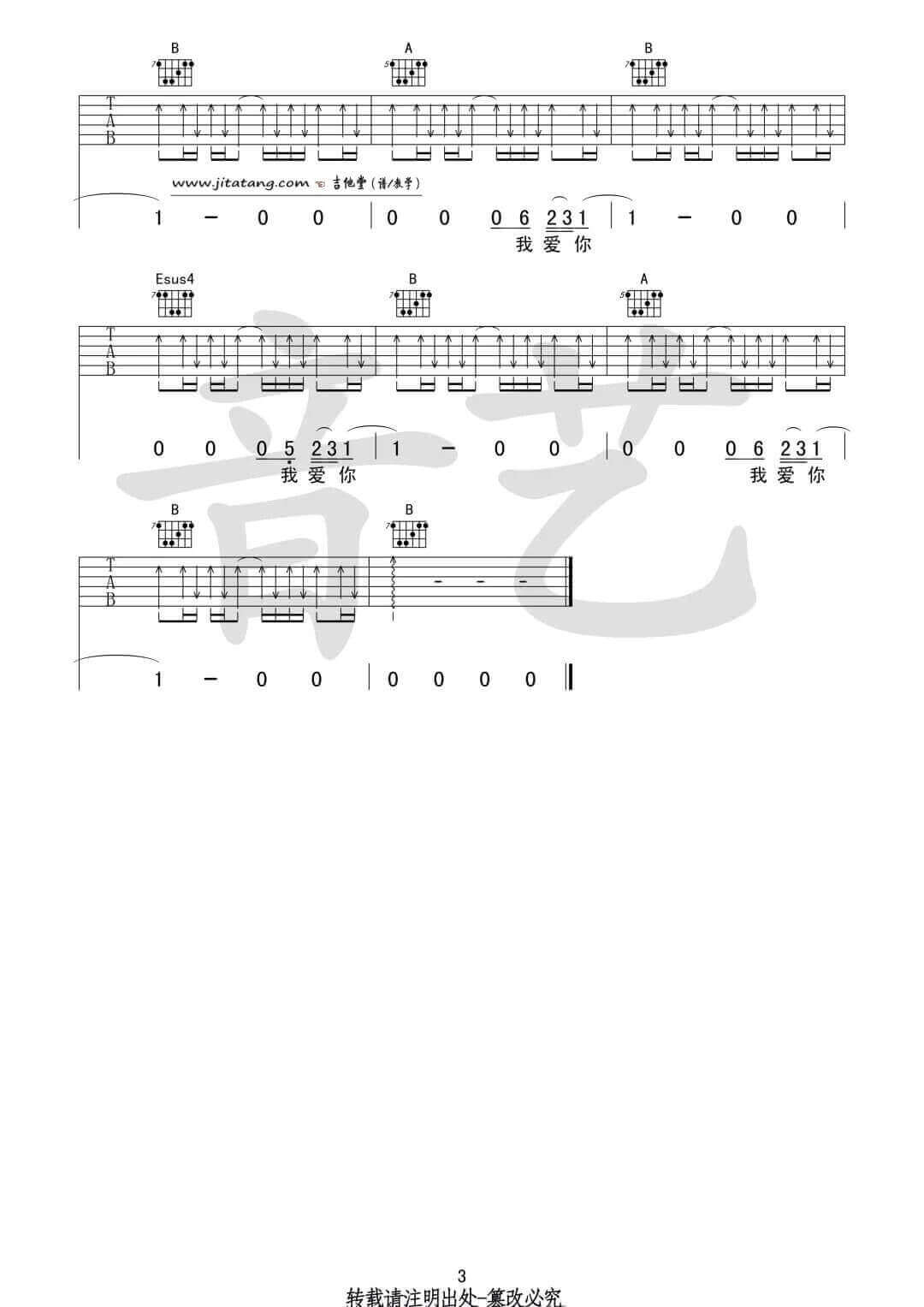 曲谱介绍: 关于我爱你吉他谱采用B调指法,由音艺吉他编配。这首浪漫手机吉他谱也很帅,快点去学习吧,没学会的小伙伴要继续加油喔,稳!