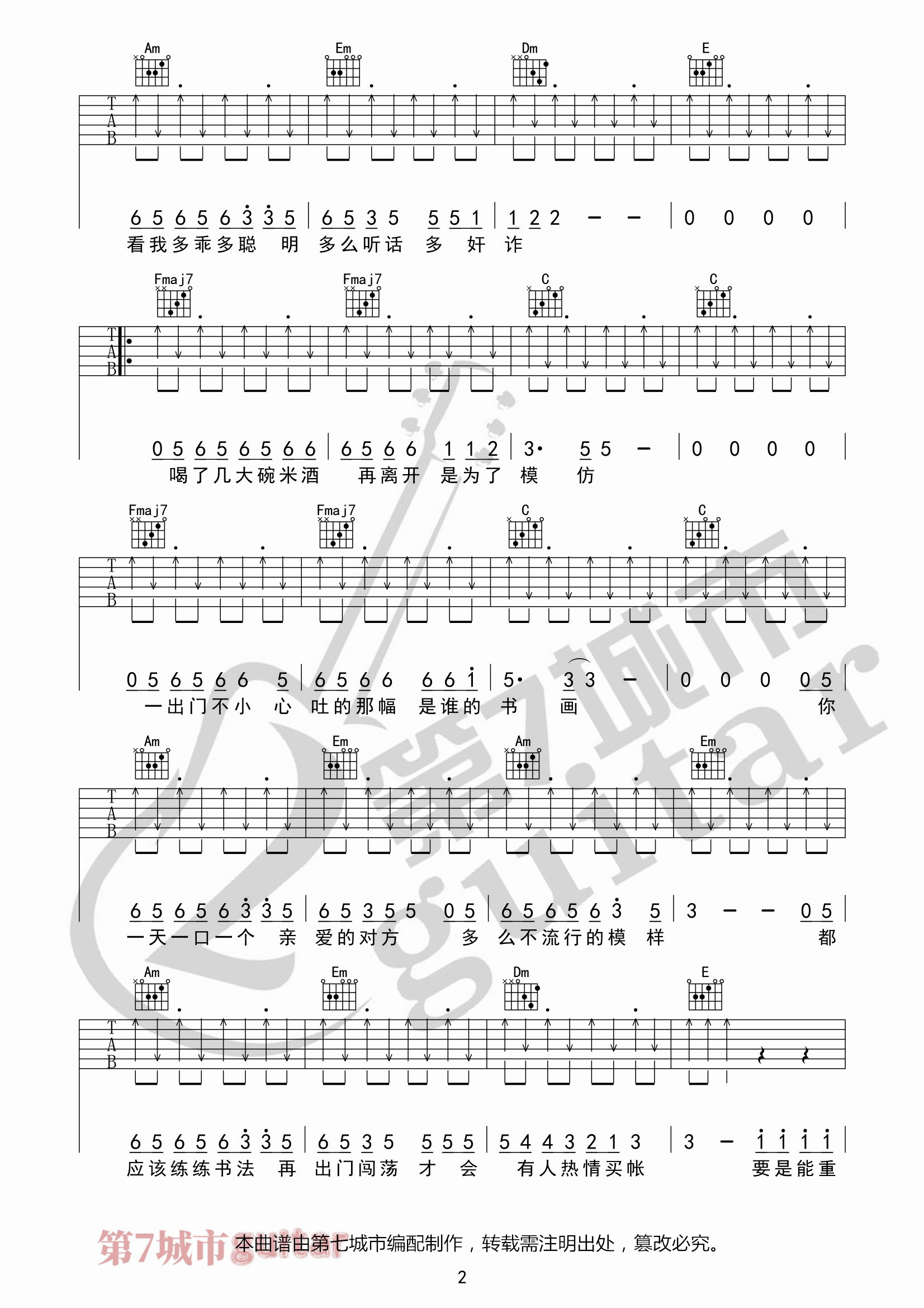 吉他弹唱C调来源:李荣浩_第七城市197 浏览2024-02-02 21:23发布图谱共3页