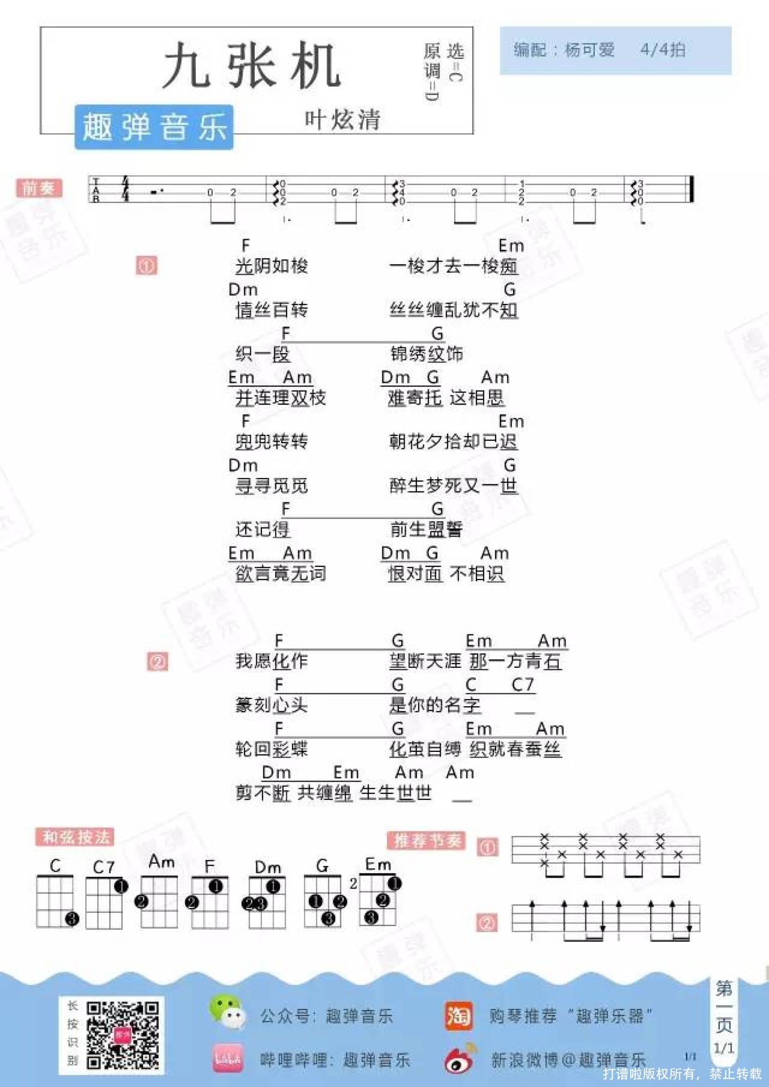 九张机尤克里里谱
