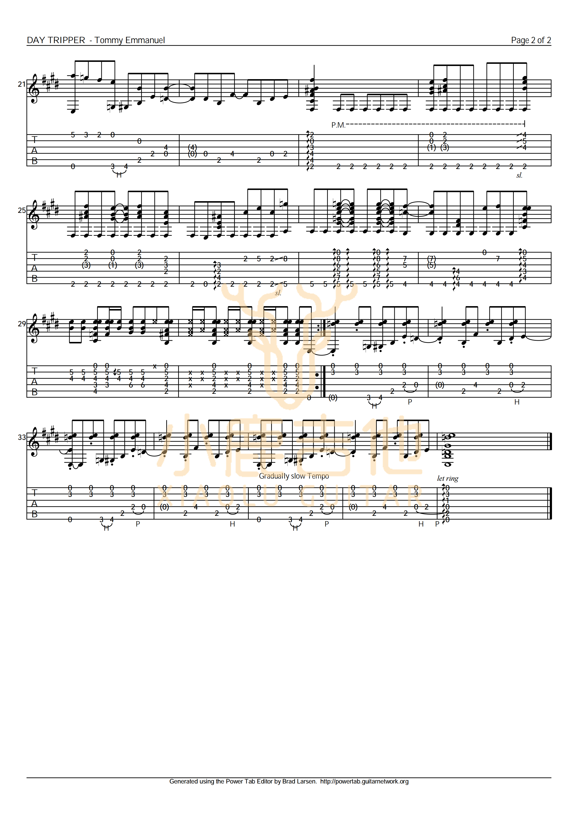 曲谱介绍: Day《DayTripper-TommyEmmanuel》吉他独奏谱,共有2张高清图谱,免翻页排版设计。