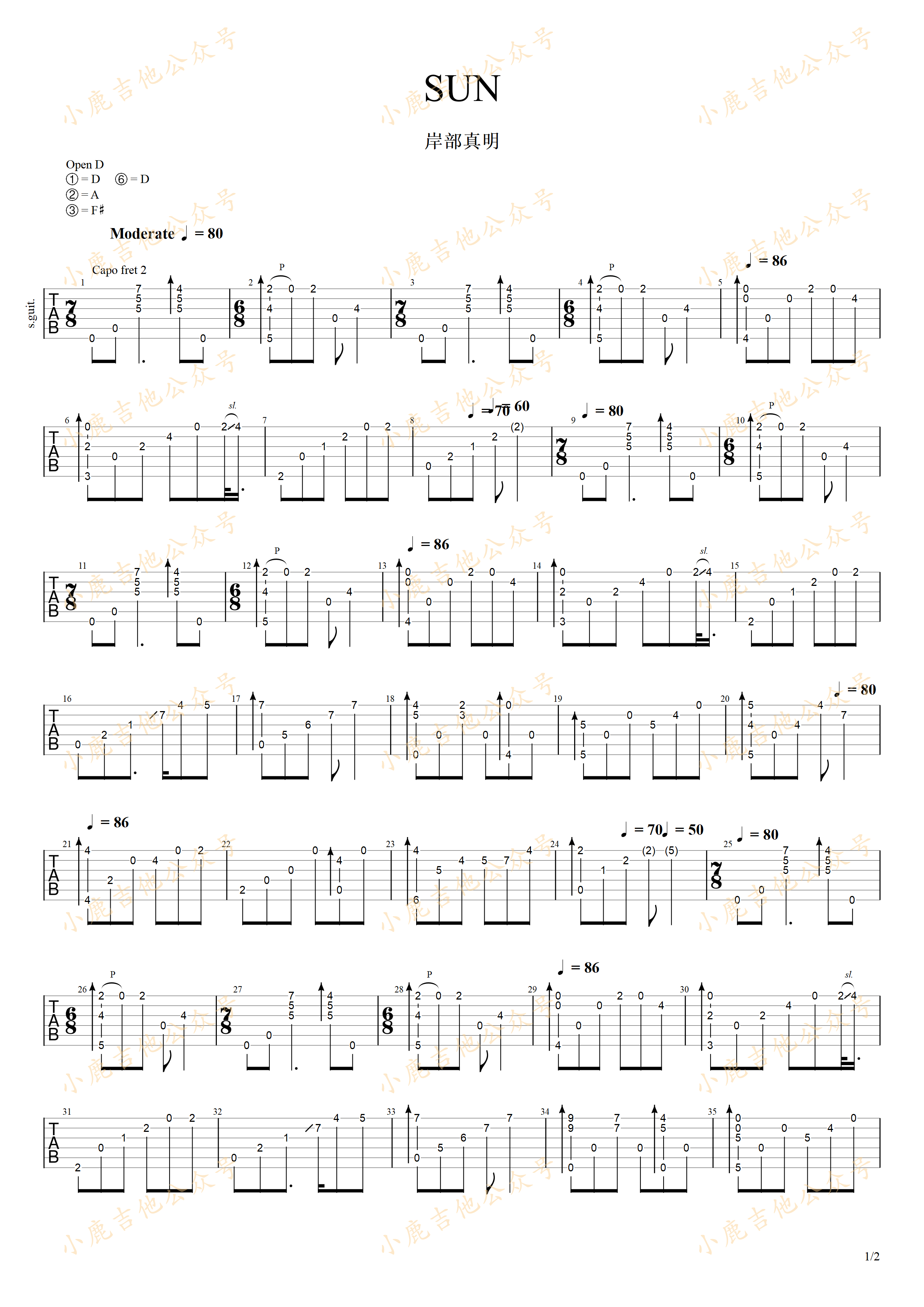 曲谱介绍: Sun(San)山顶夕景《Sun(San)山顶夕景-岸部真明》吉他独奏谱,共有2张高清图谱,免翻页排版设计。