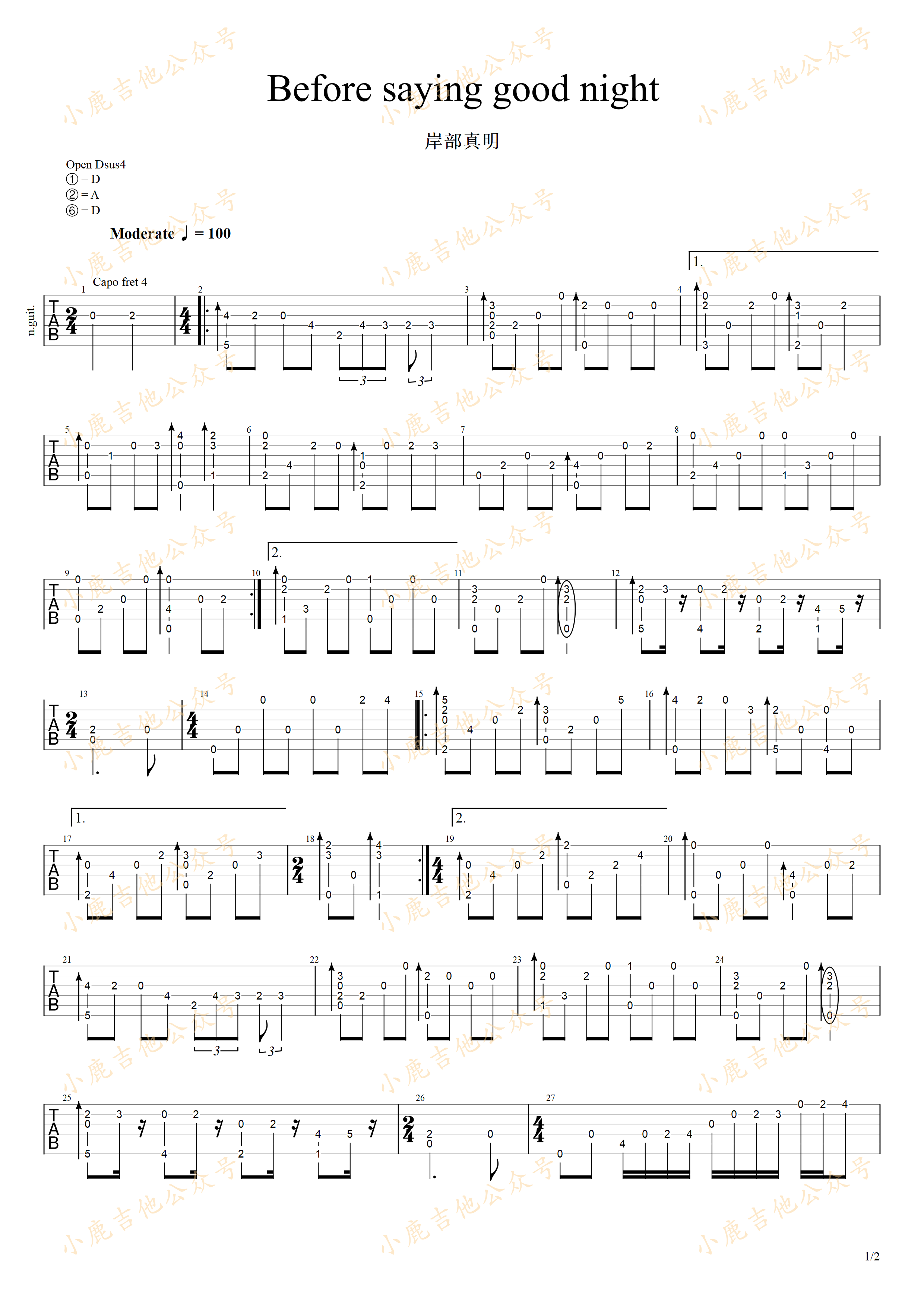 Before saying good night-岸部真明吉他谱 - Before - 吉他独奏谱