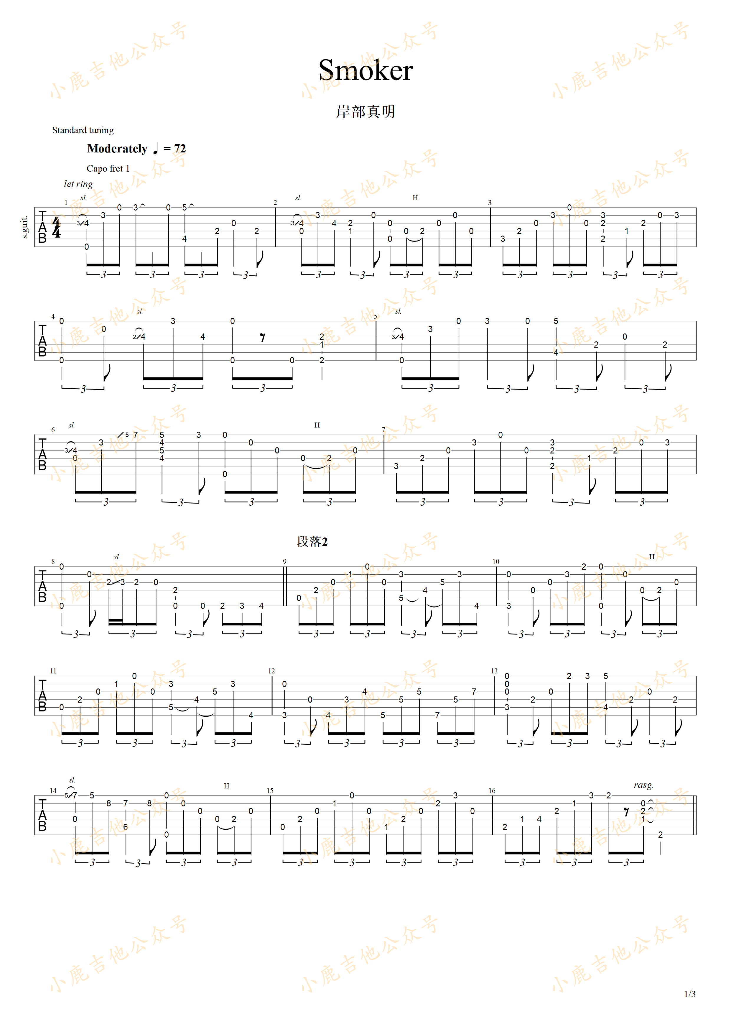 曲谱介绍: Smoker《Smoker-岸部真明》吉他独奏谱,共有3张高清图谱。
