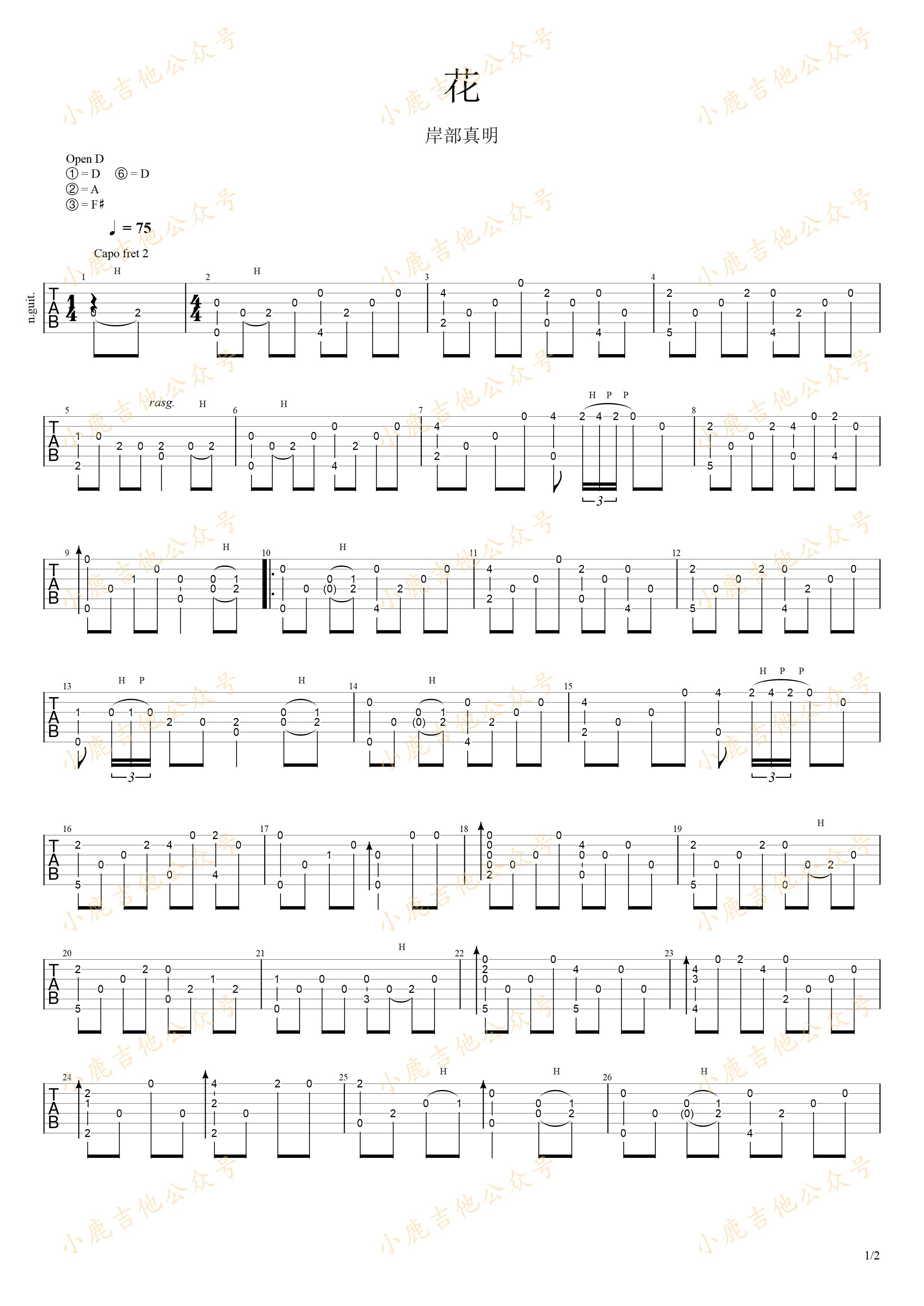 曲谱介绍: 花-岸部真明 指弹吉他谱(小鹿吉他)。