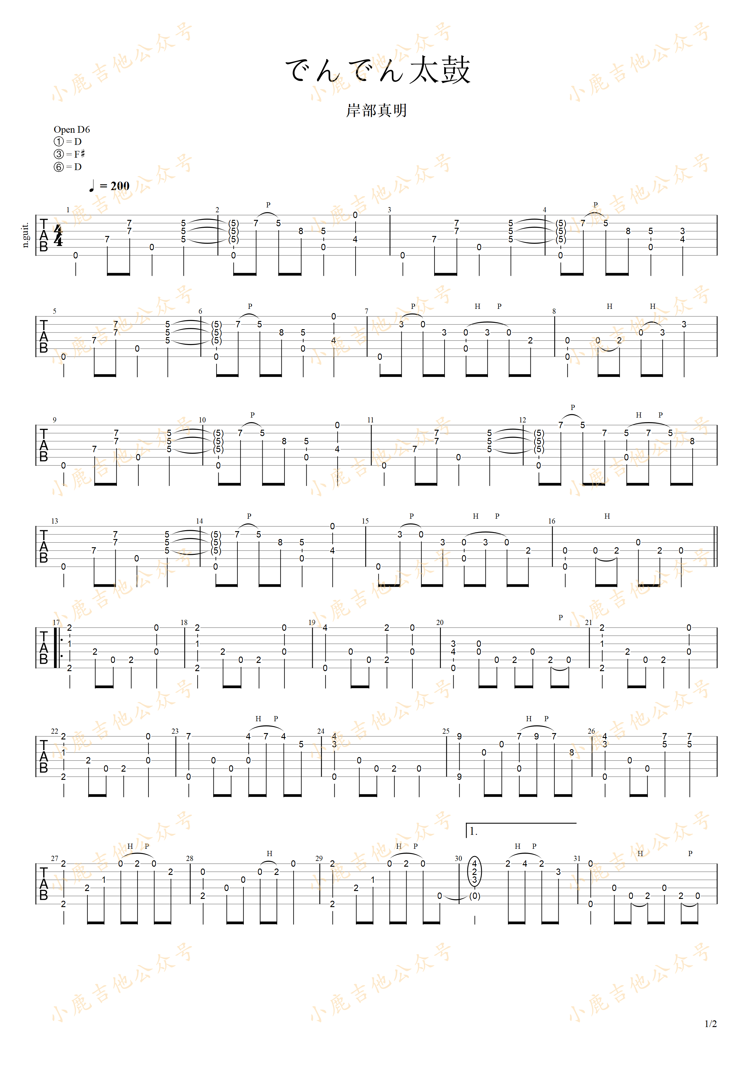 曲谱介绍: でんでん太鼓《でんでん太鼓-岸部真明》吉他独奏谱,共有2张高清图谱,免翻页排版设计。