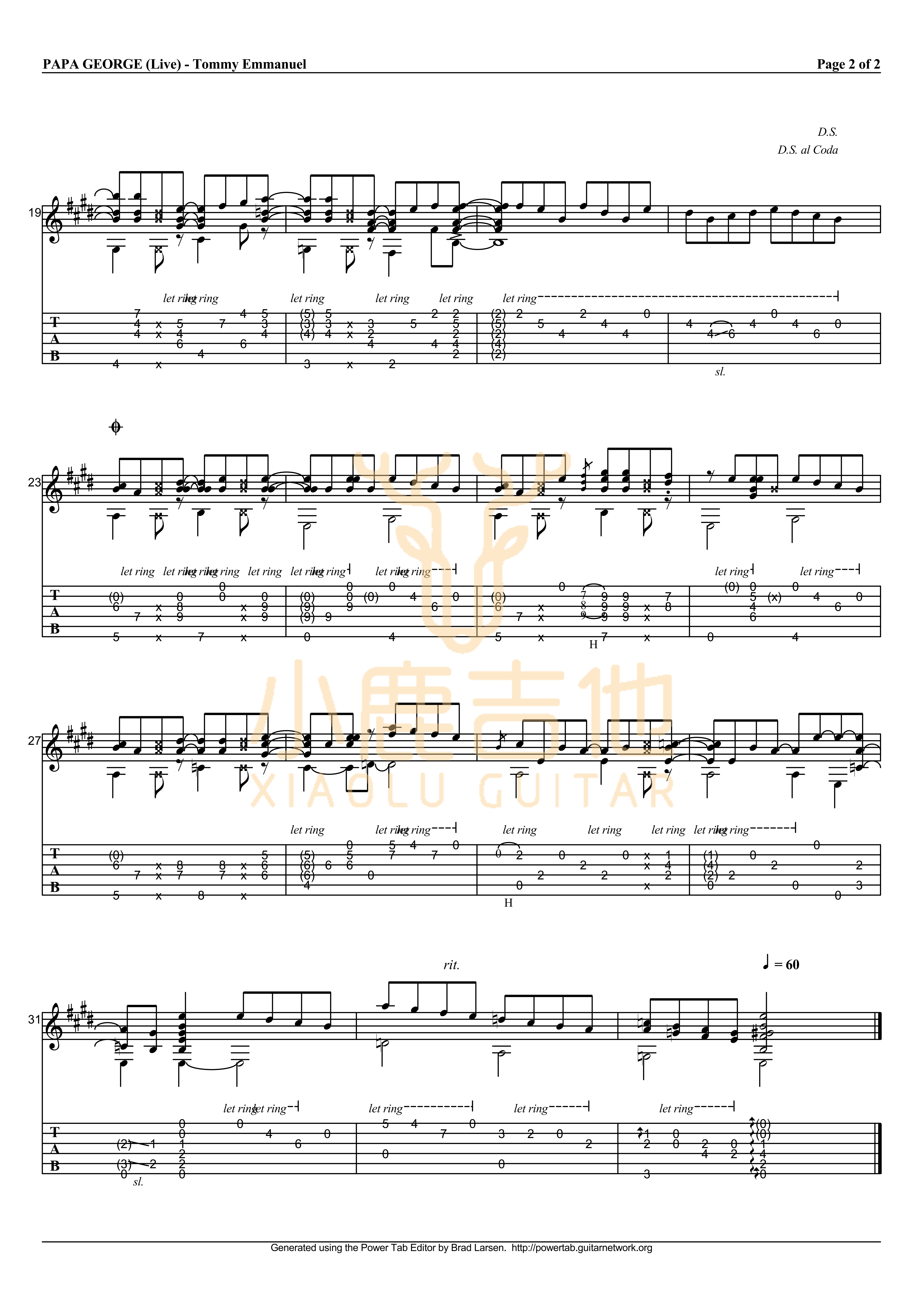 曲谱介绍: Papa《Papageorge---TommyEmmanuel》吉他独奏谱,共有2张高清图谱,免翻页排版设计。