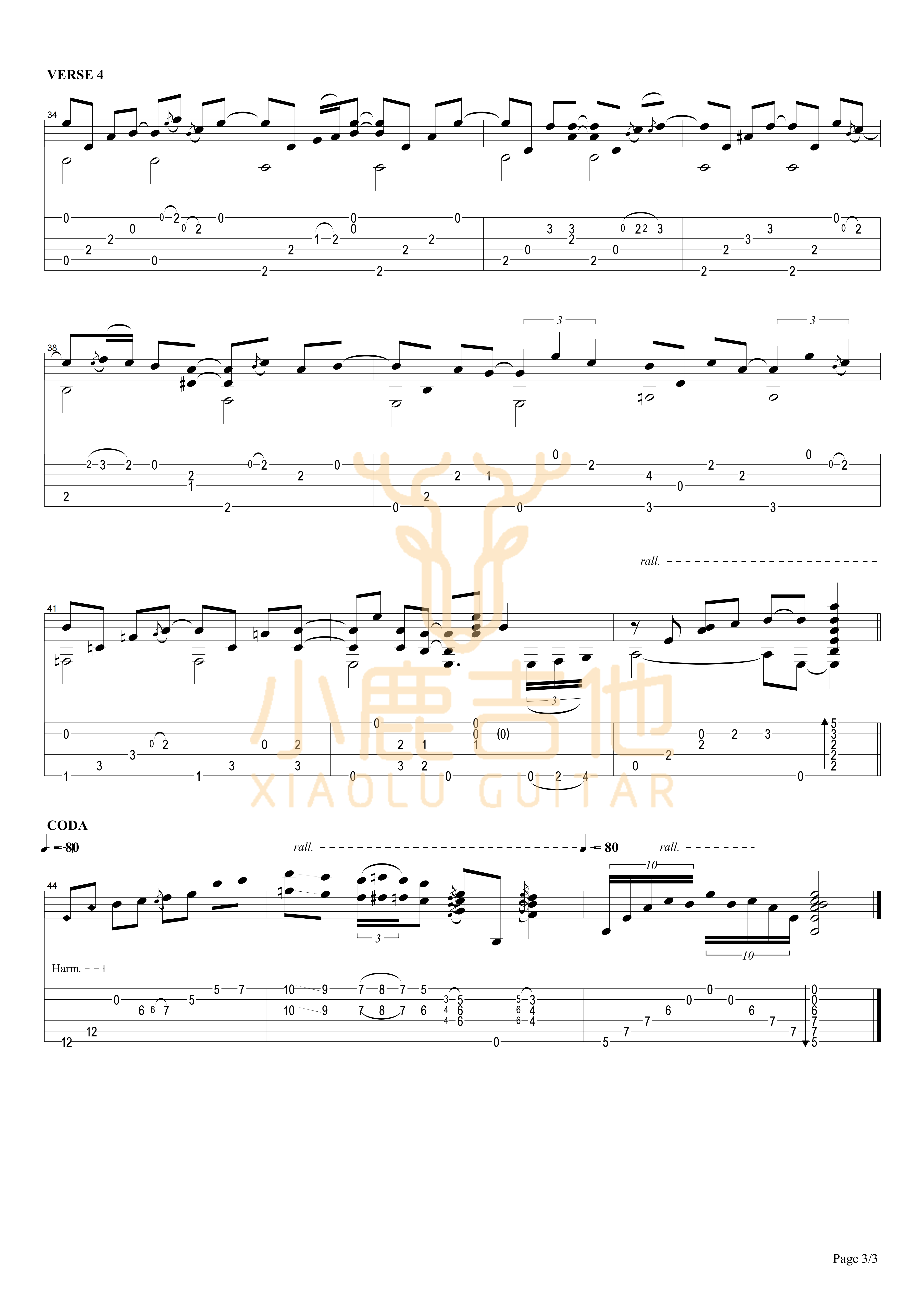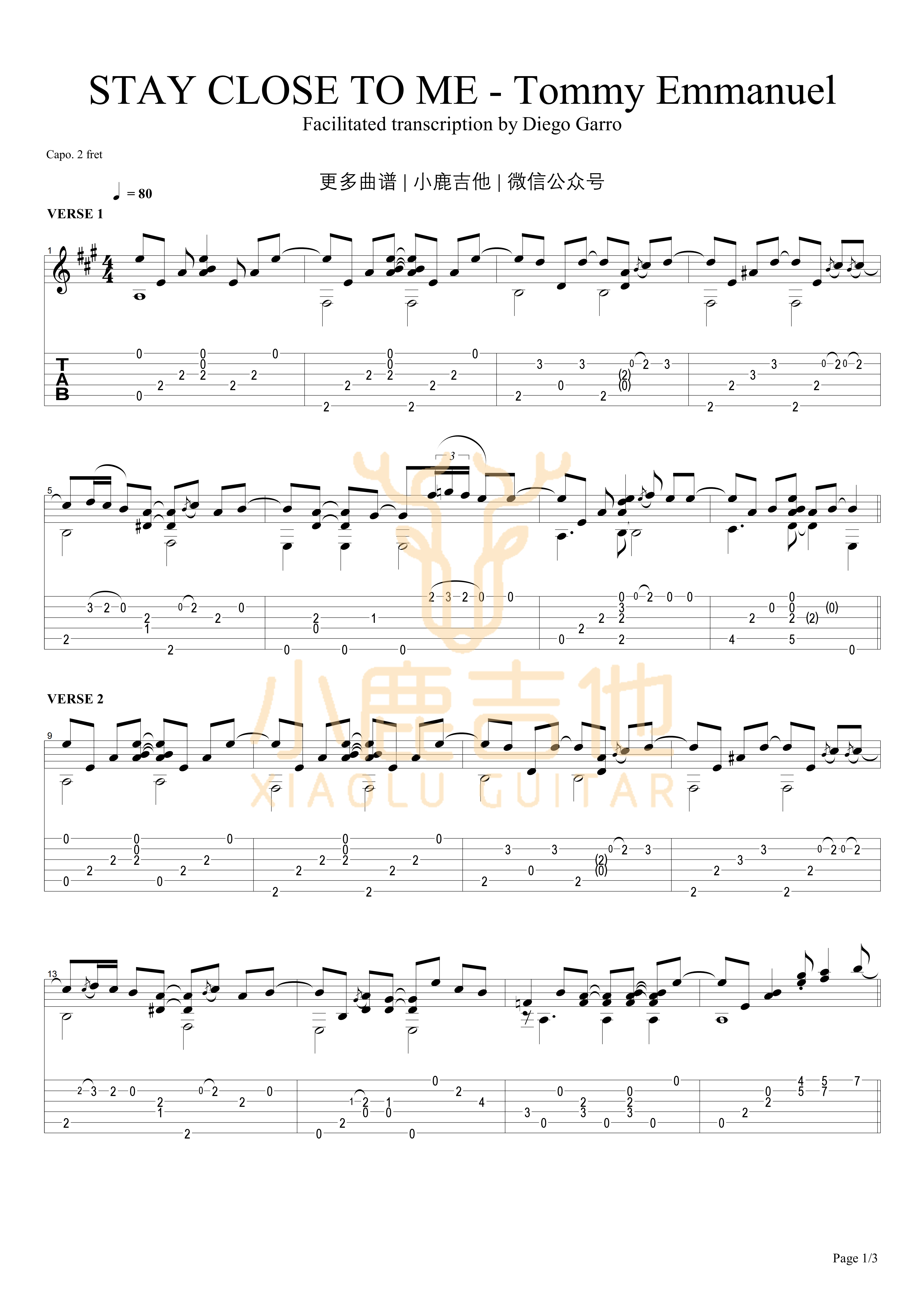 曲谱介绍: STAY《STAYCLOSETOME-TommyEmmanuel》吉他独奏谱,共有3张高清图谱。