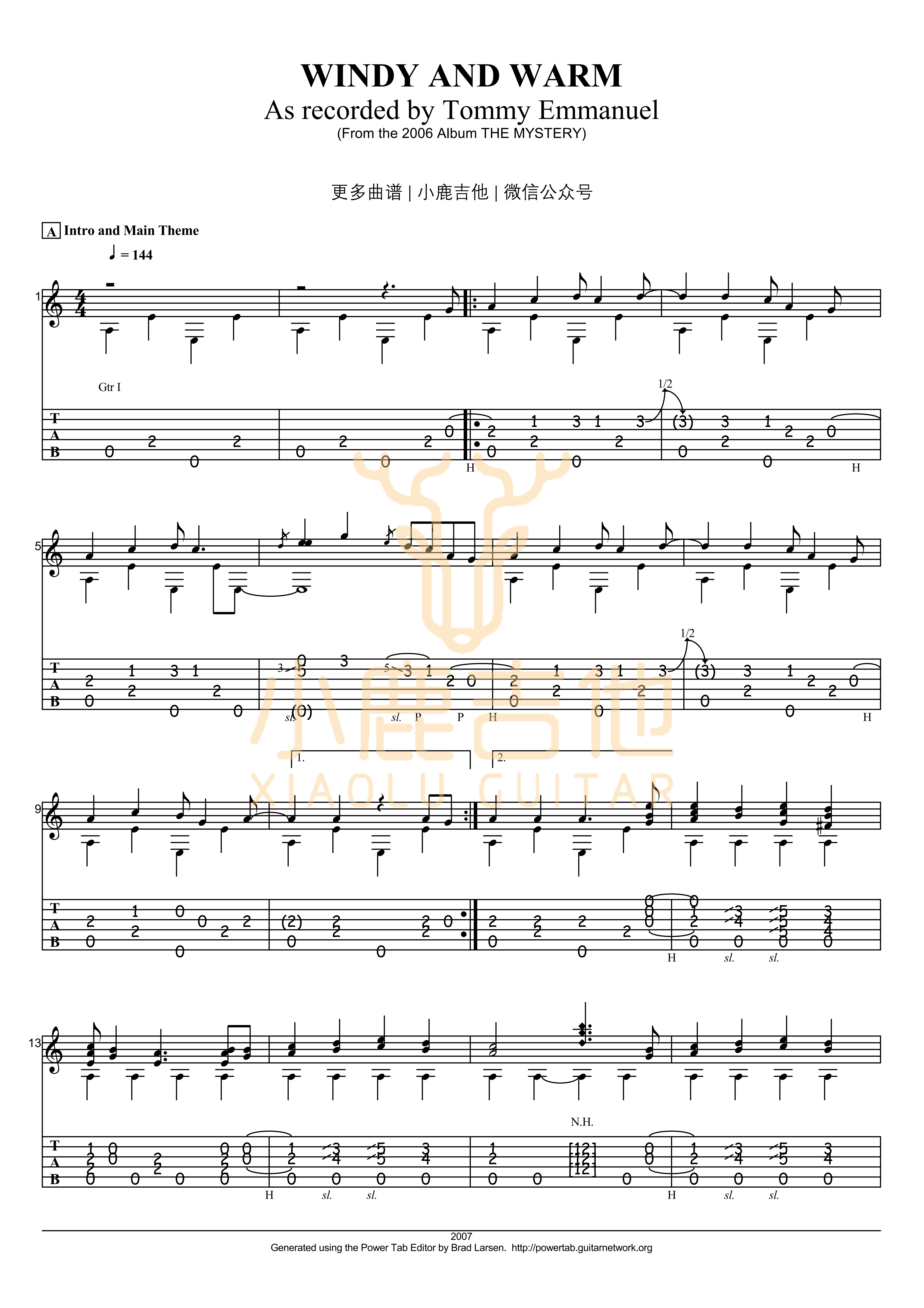 Windy and warm-Tommy Emmanuel吉他谱 - Windy - 吉他独奏谱