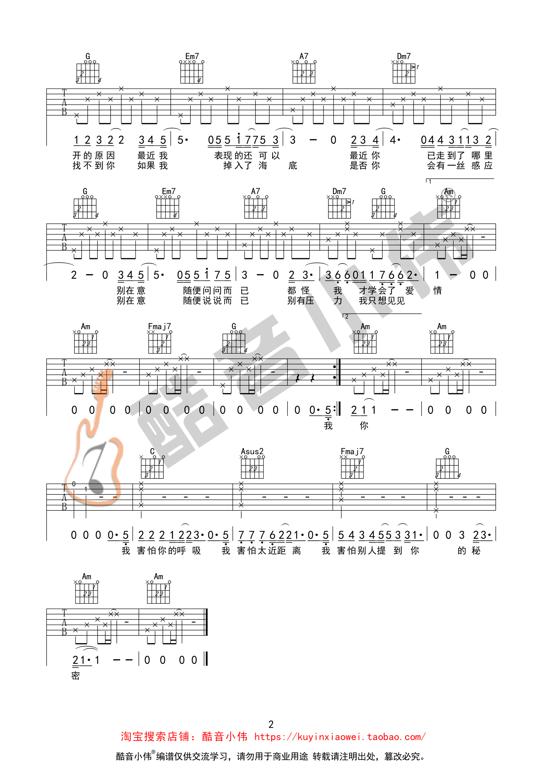 当前位置:琴谱网>吉他弹唱>我害怕
