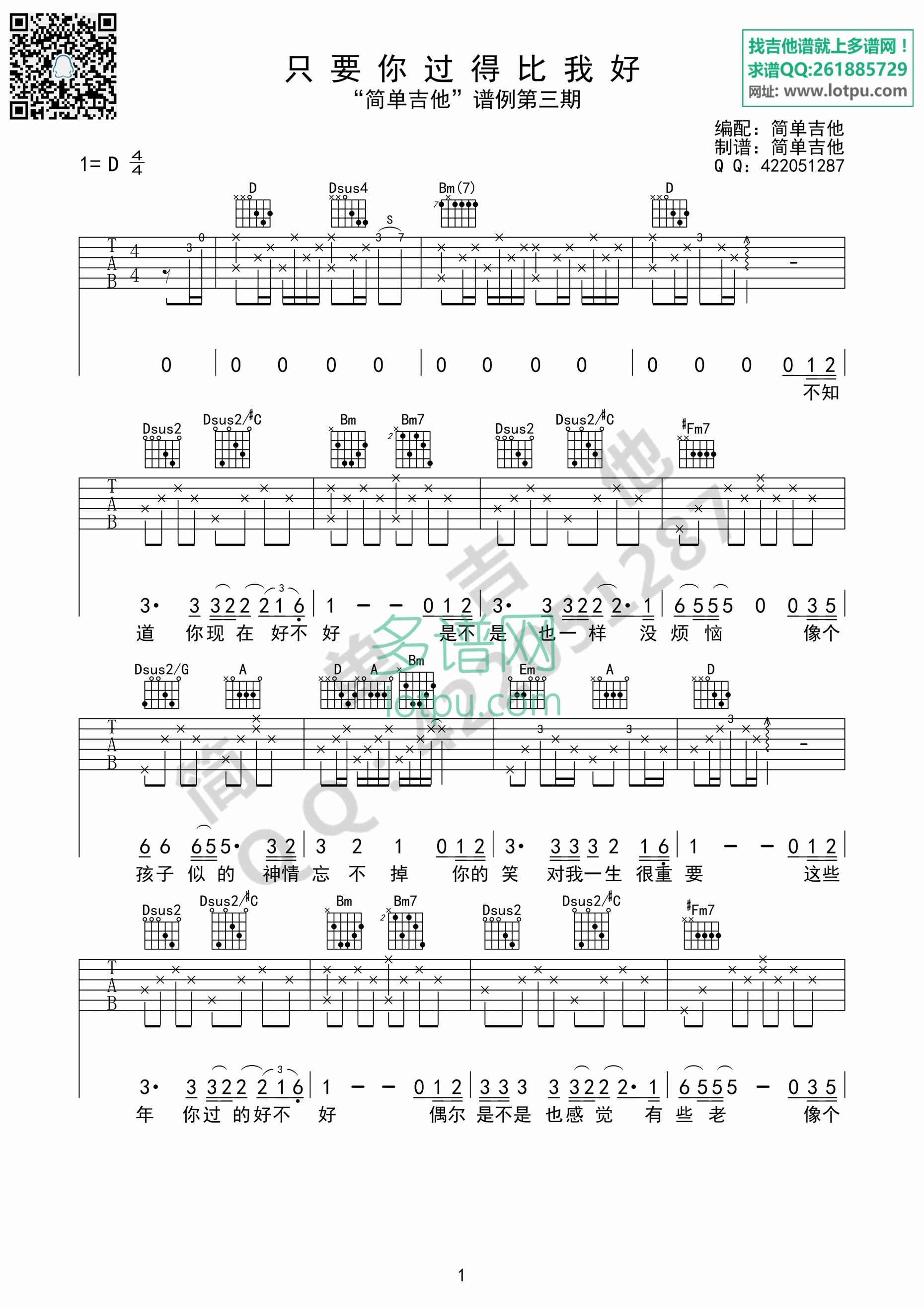 琴谱网为您精心推荐 只要你过得比我好 高清图谱