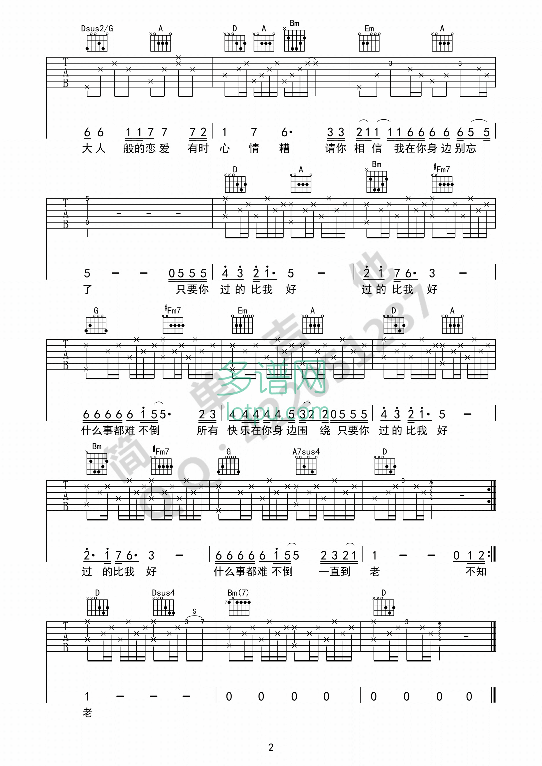 只要你过得比我好吉他谱 - 钟镇涛 - D调吉他弹唱谱