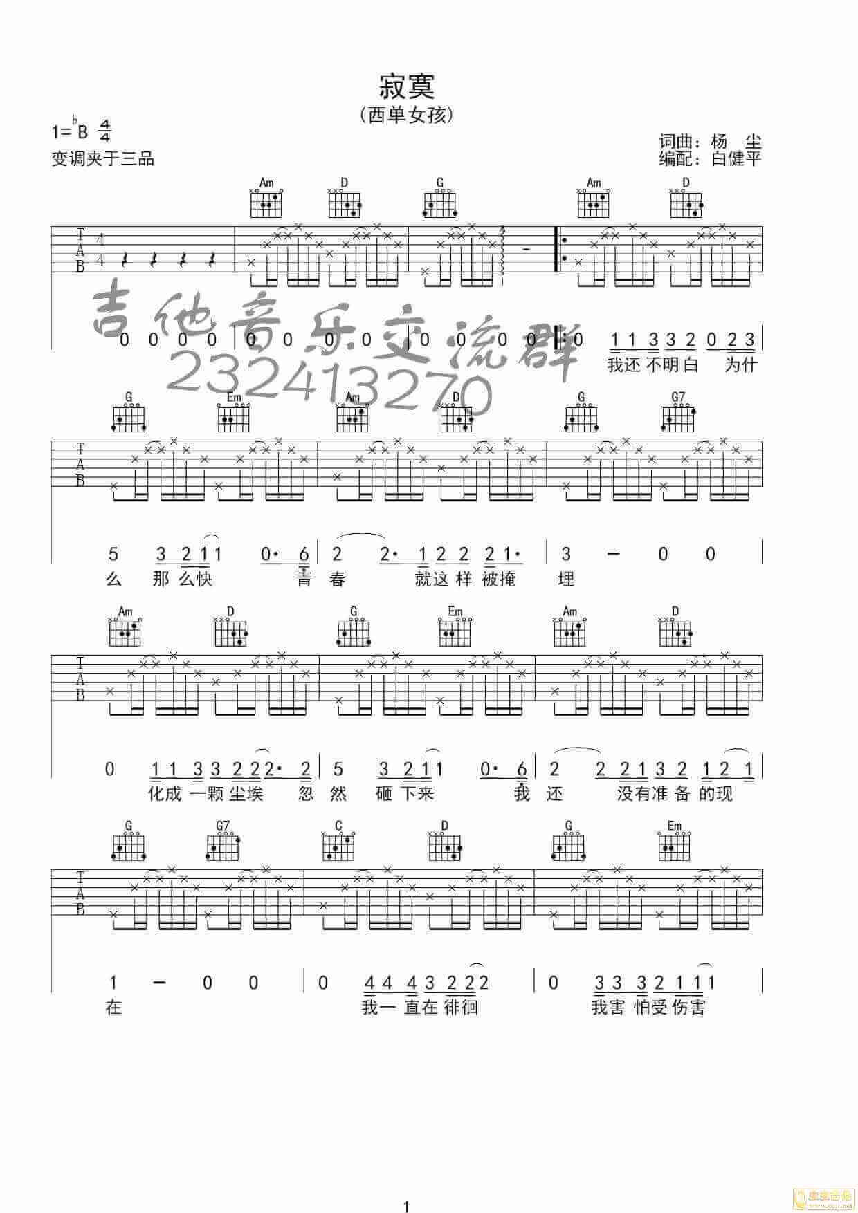 曲谱介绍: 寂寞吉他谱采用了B调指法,由虫虫吉他编配完成。听兄弟说,慢冷吉他谱听了耳朵会怀孕,快快学起来,学完去撩妹!