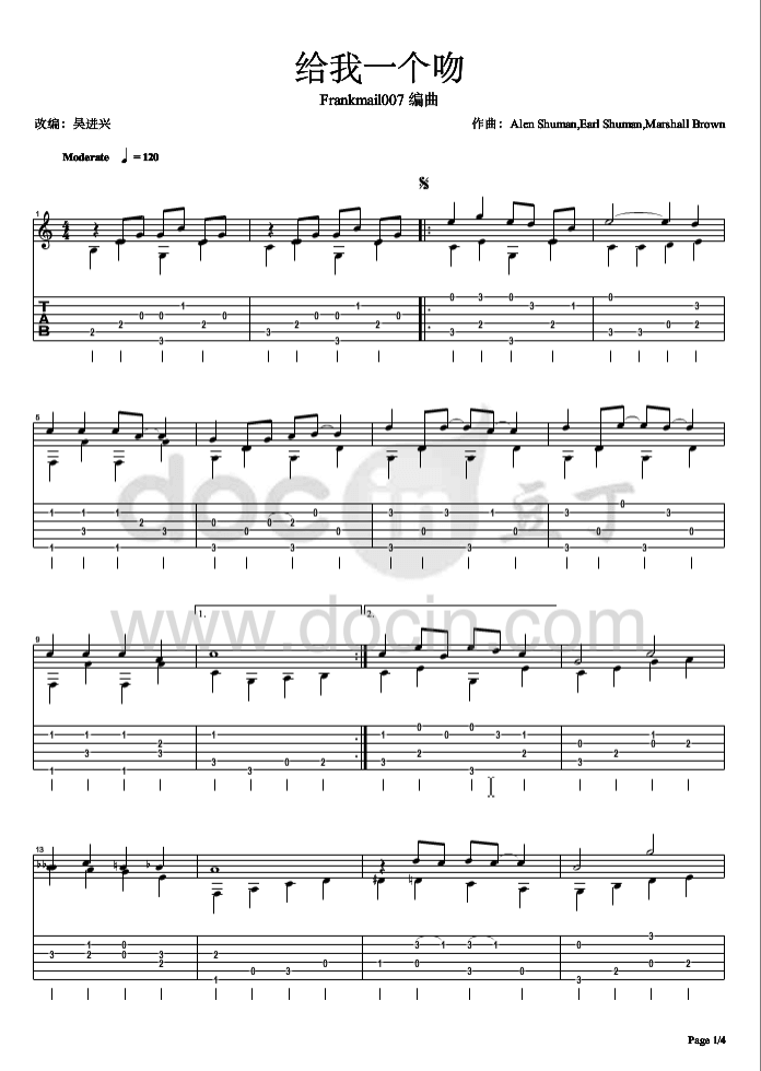 曲谱介绍: 给我一个吻吉他谱由豆丁编配完成。这首歌曲相信很多人都会唱,或者都听过,是一首十分经典的老歌曲,邓丽君的声音甜美迷人,但又不刻意,在甜蜜欢快的旋律之中,我们每个人都忍不住随着他的节奏律动起来。听兄弟说,不煽情吉他谱听了耳朵会怀孕,快快学起来,学完去撩妹!
