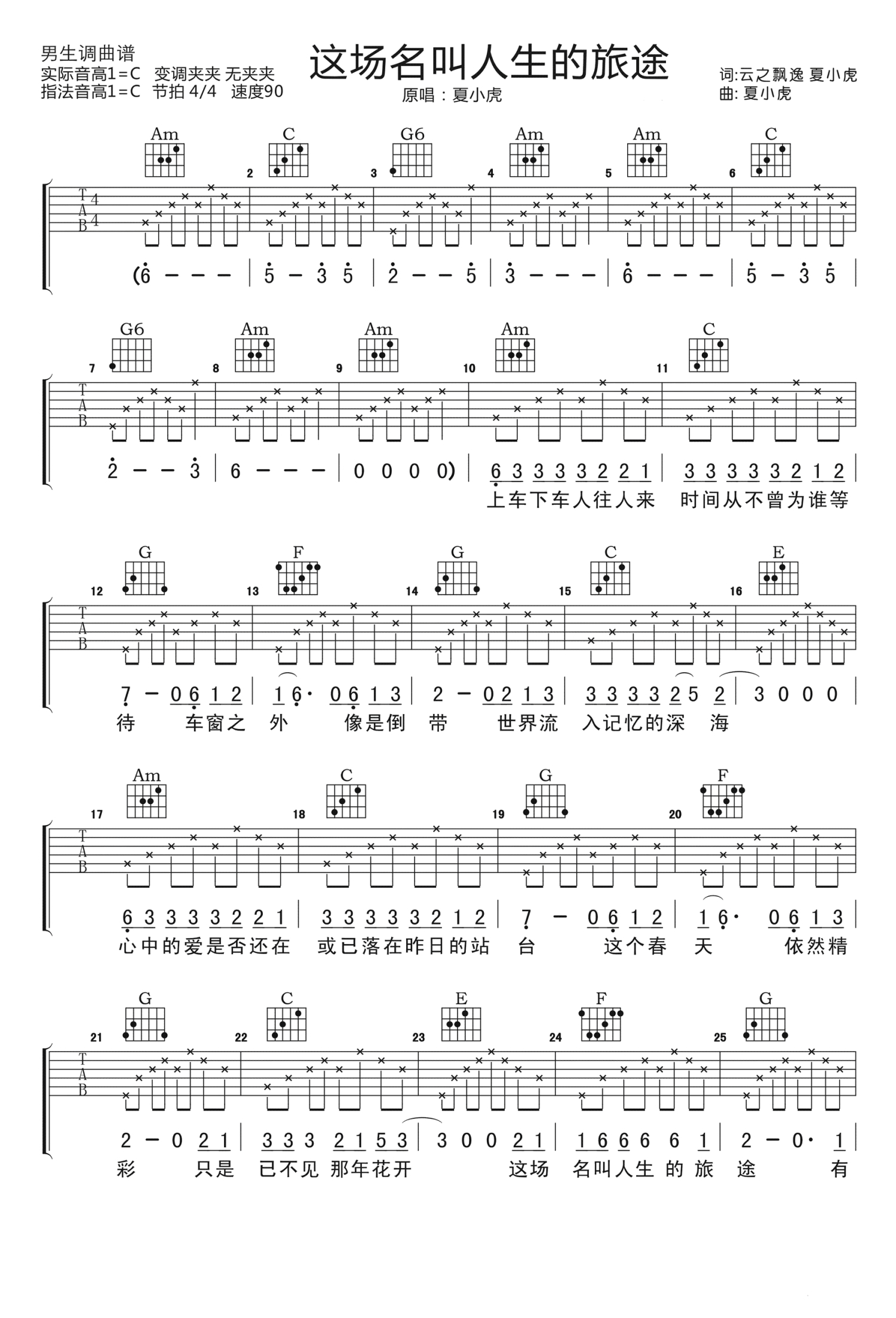 这场名叫人生的旅途吉他谱 - 夏小虎 - C调吉他弹唱谱