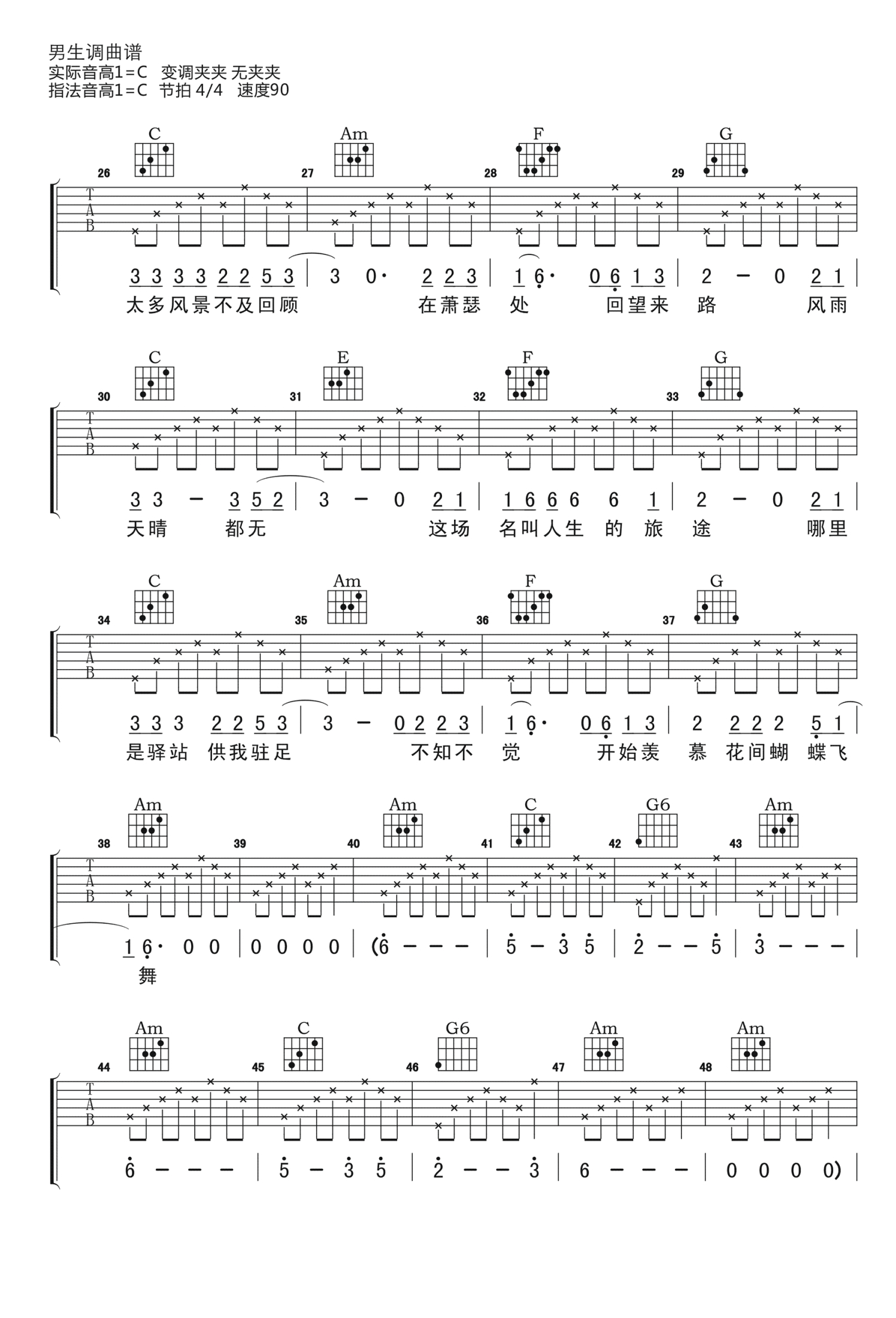 吉他弹唱C调来源:小叶歌吉他1343 浏览2018-03-19 13:34发布图谱共6页
