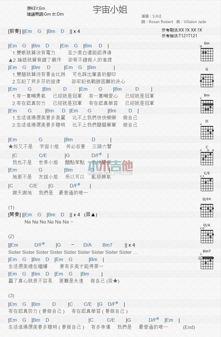 宇宙小姐_吉他谱 - 宇宙小姐 - 吉他弹唱谱