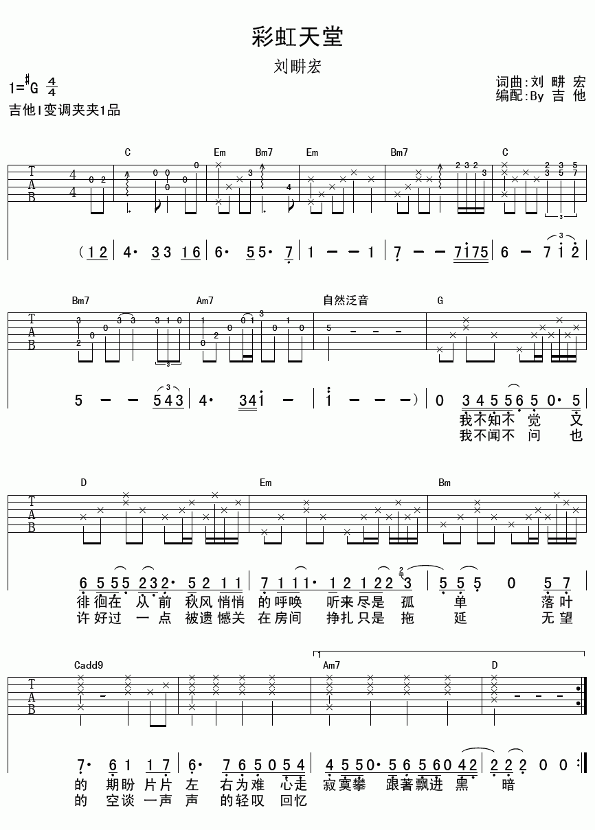 刘耕宏 彩虹天堂吉他谱 - 刘耕宏 - 吉他弹唱谱