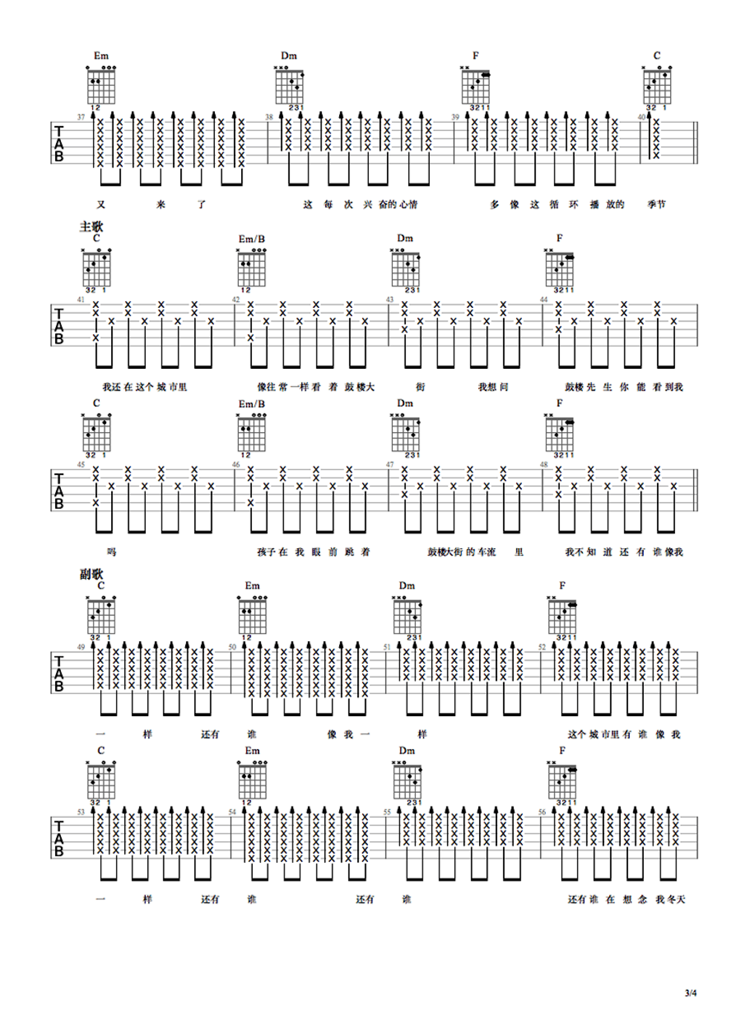 当前位置:琴谱网>吉他弹唱>鼓楼先生
